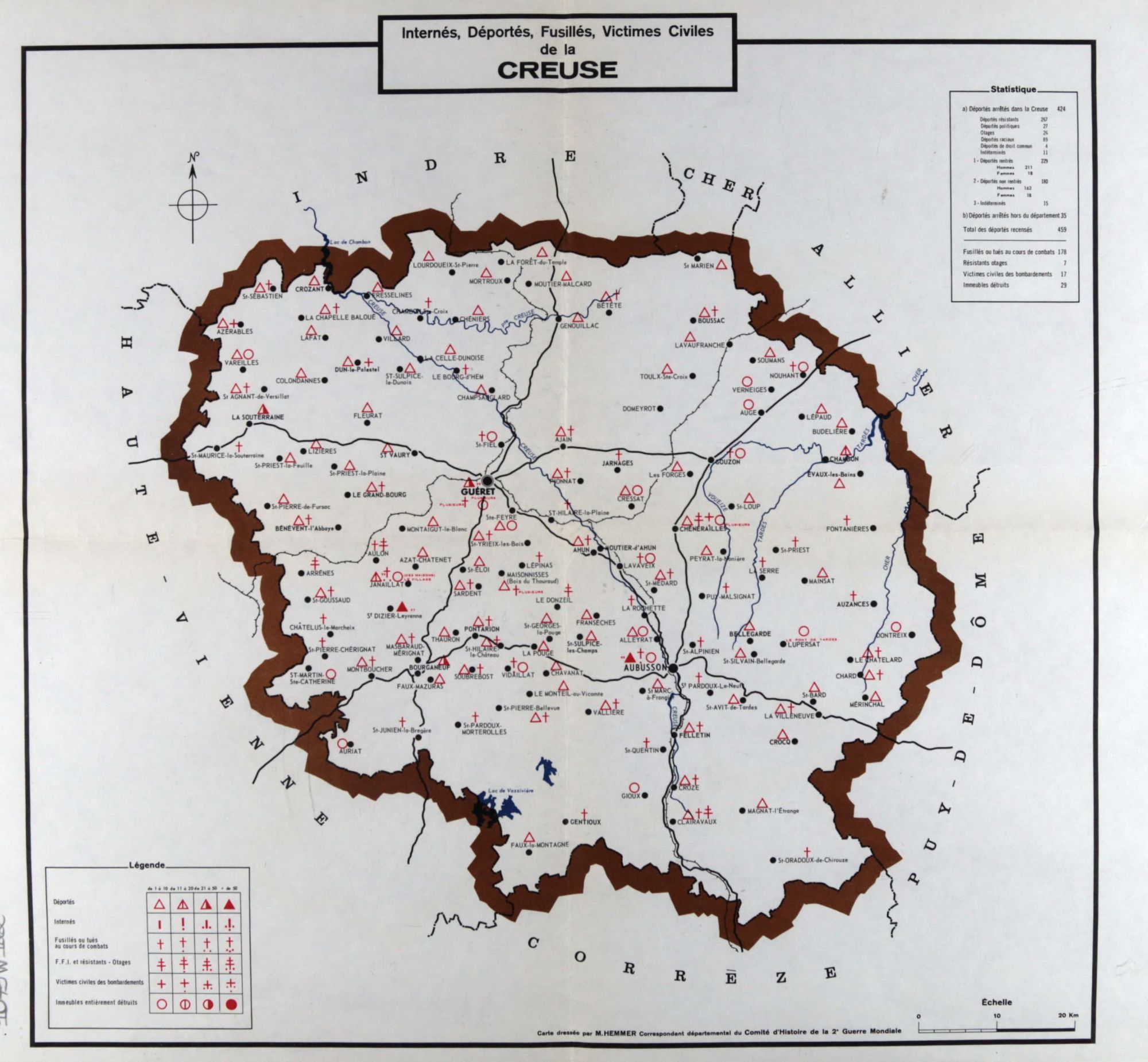Au début des années 1960, le Comité d'histoire de la deuxième guerre mondiale (créé en 1951) entreprend de réaliser, département par département, "une carte de la souffrance" afin d'illustrer, la répression et les persécutions menées par les forces allemandes et celles de Vichy.