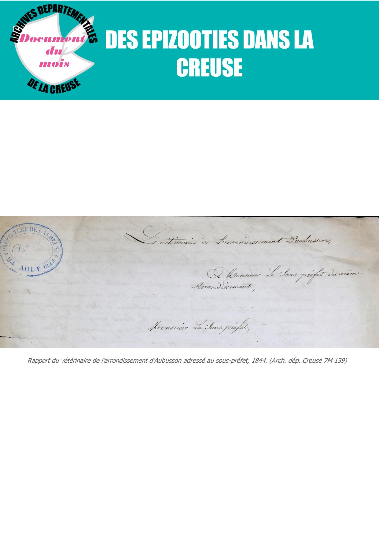 Document du mois d'août : "Des épizooties dans la Creuse"