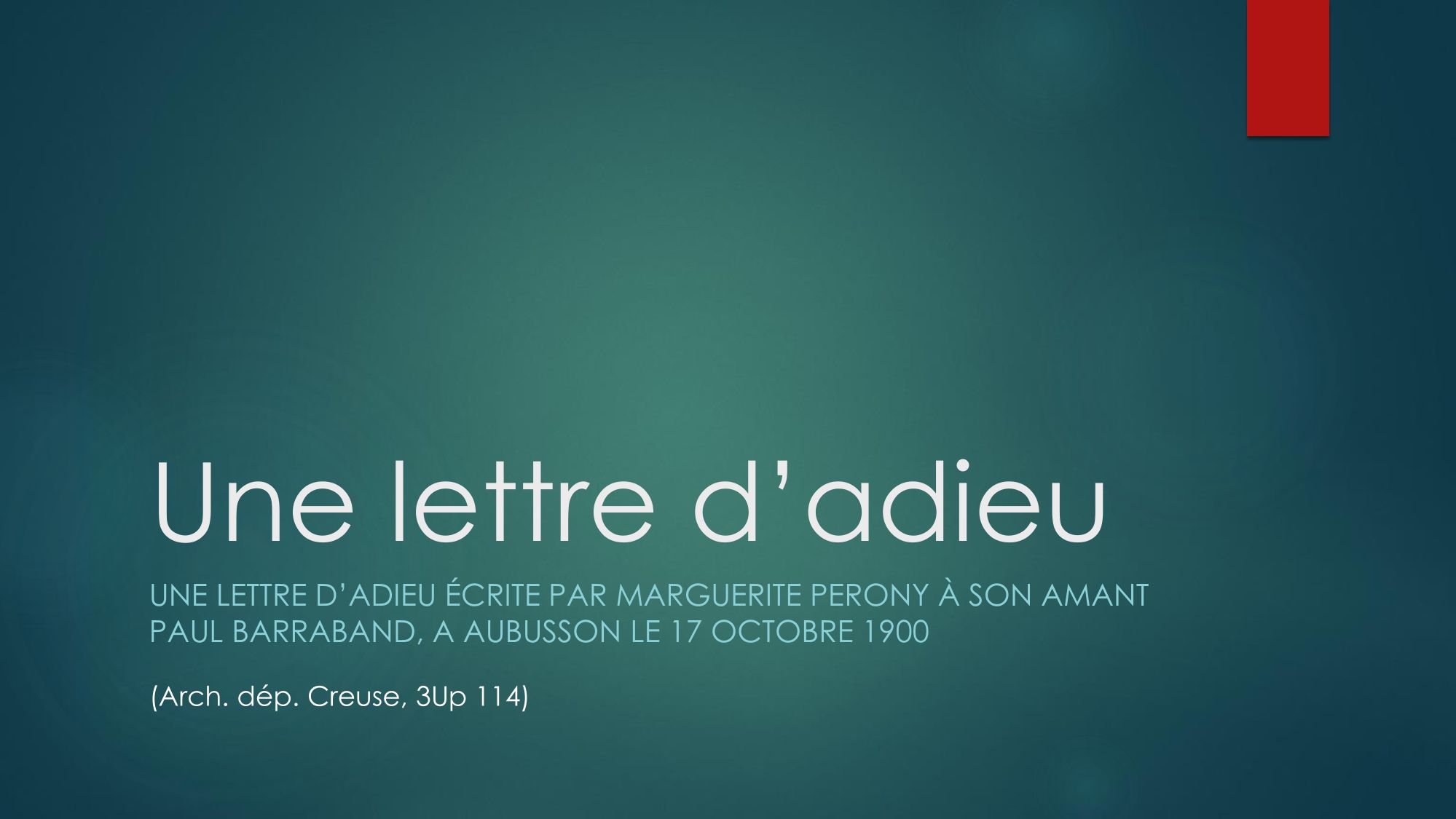 Document du mois de janvier : lettre d'adieu de Marguerite Perony à son amant Pierre Barraband, 1900 Document du mois (622.2 Ko)