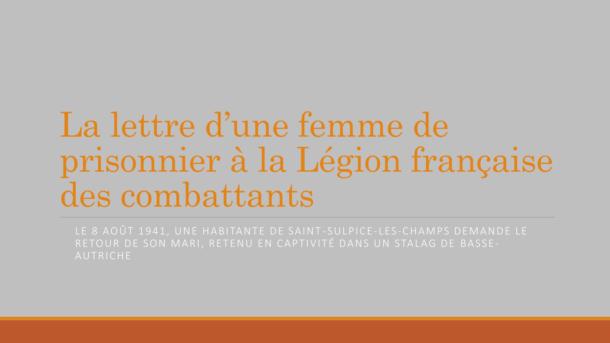 Document du mois de juin : La lettre d’une femme de prisonnier à la Légion française des combattants Consulter le document (1.2 Mo) Saint-Sulpice-les-Champs, 48FI 1298