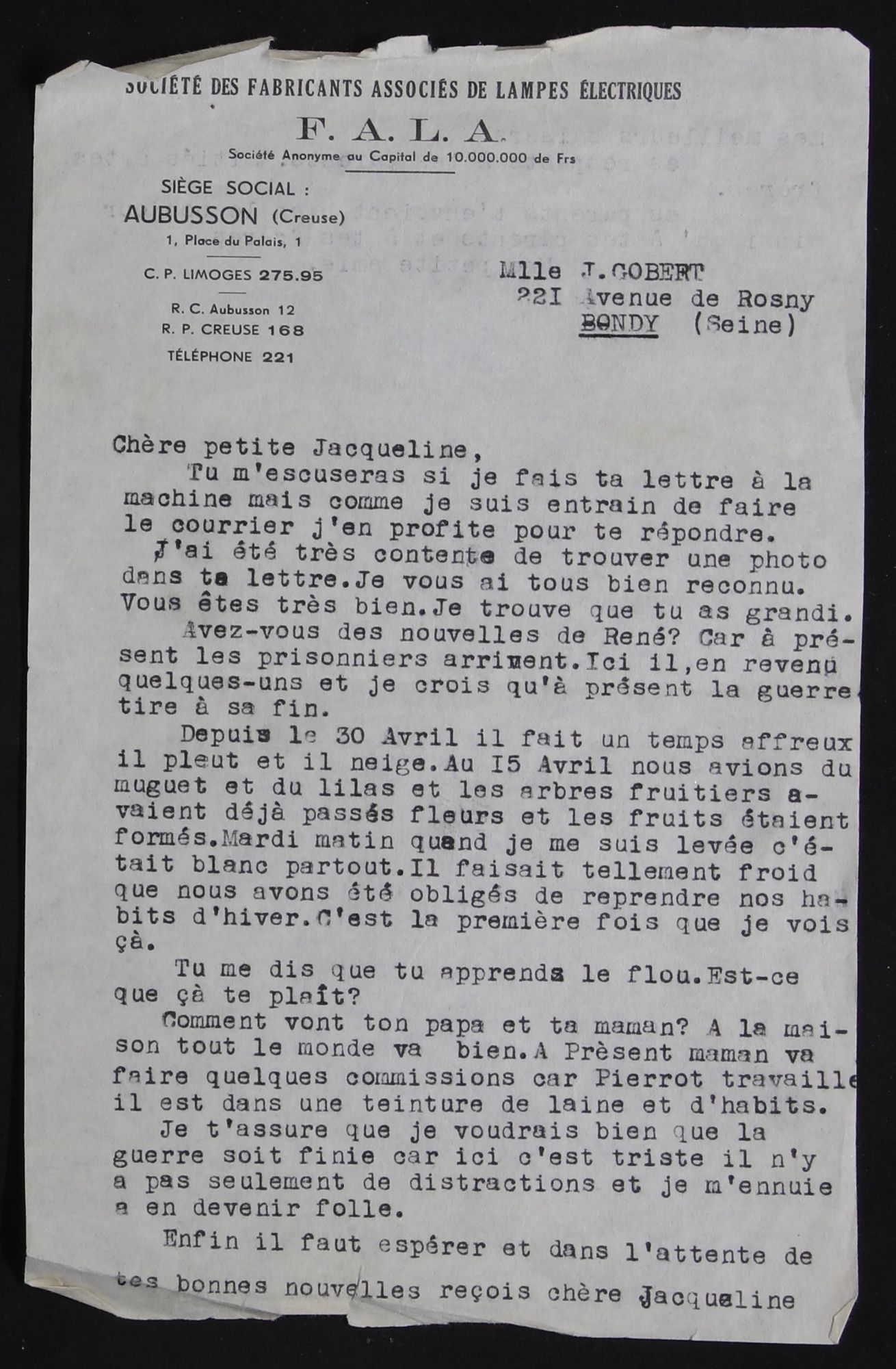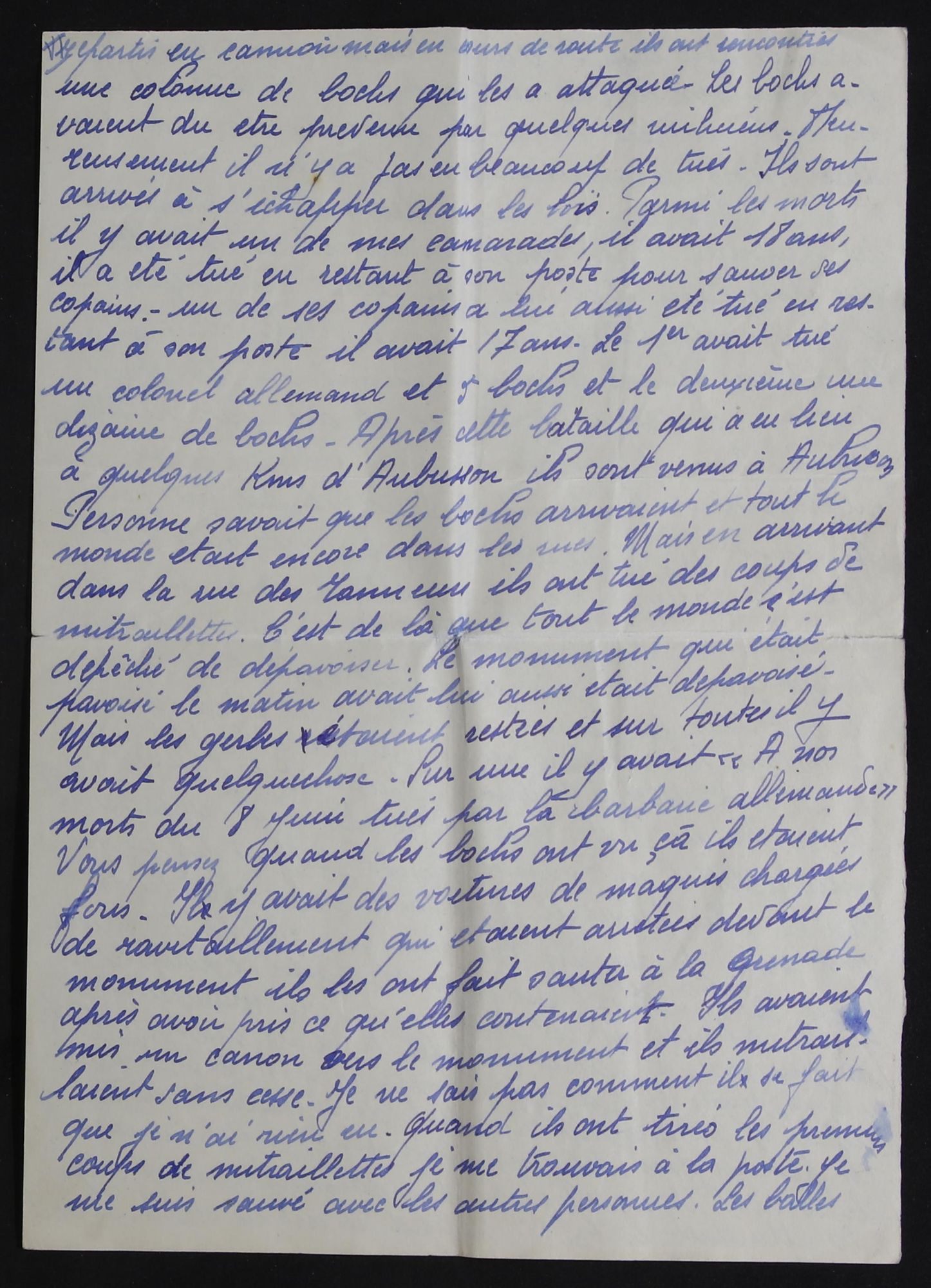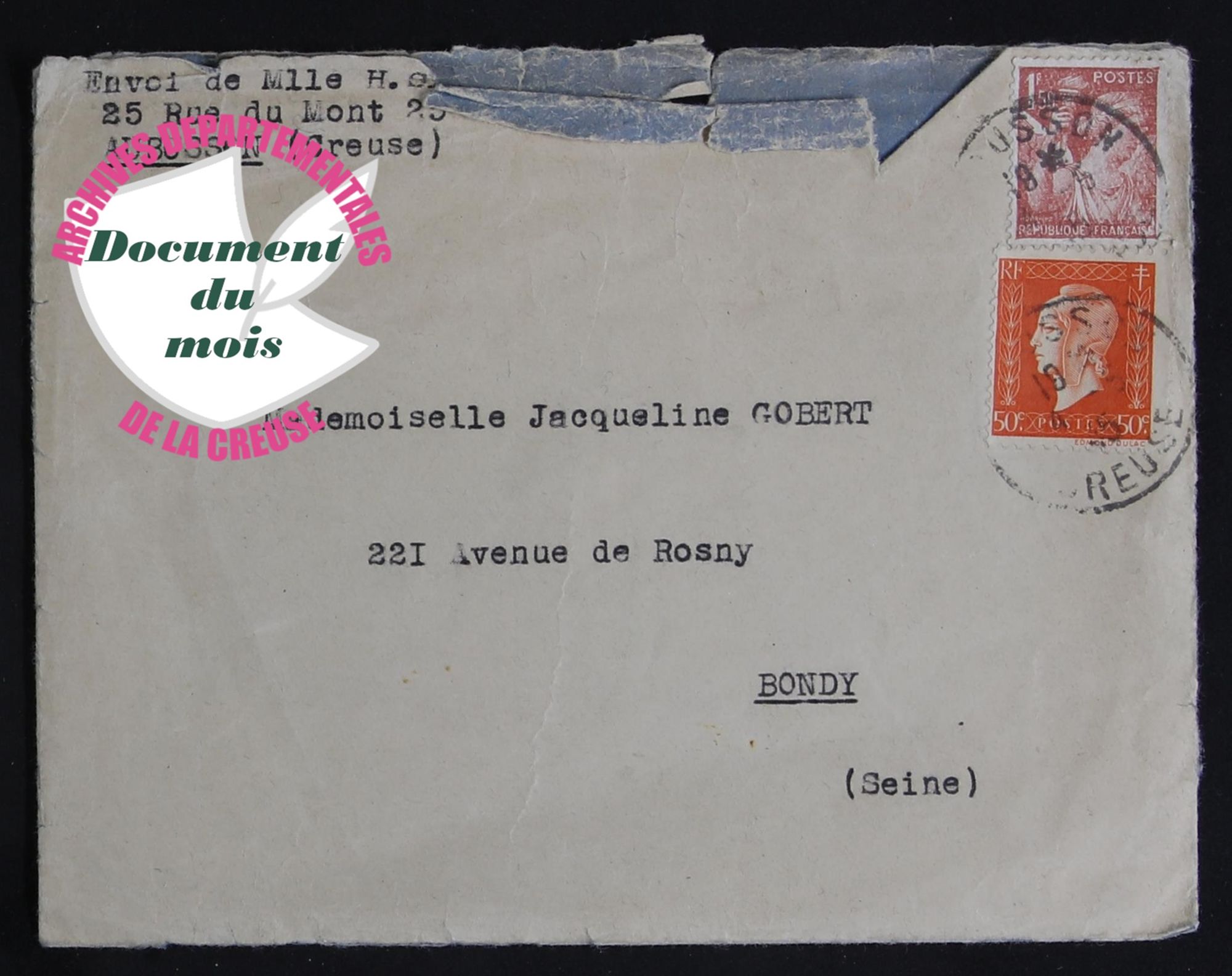 Document du mois de Juin : "La libération d'Aubusson, un nouveau témoignage manuscrit." Découvrir le document (1.1 Mo) Consultez l'intégralité de la corresponce cotée 1J 1193 :