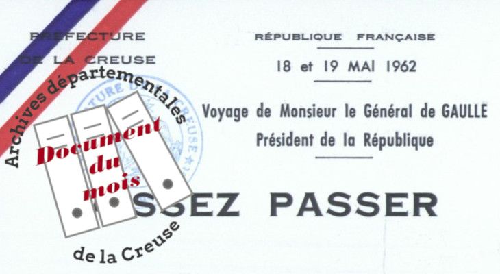 Document du mois de mai : Visite du Général de Gaulle en Creuse (18 mai 1962) Découvrir ce document (500.6 Ko)