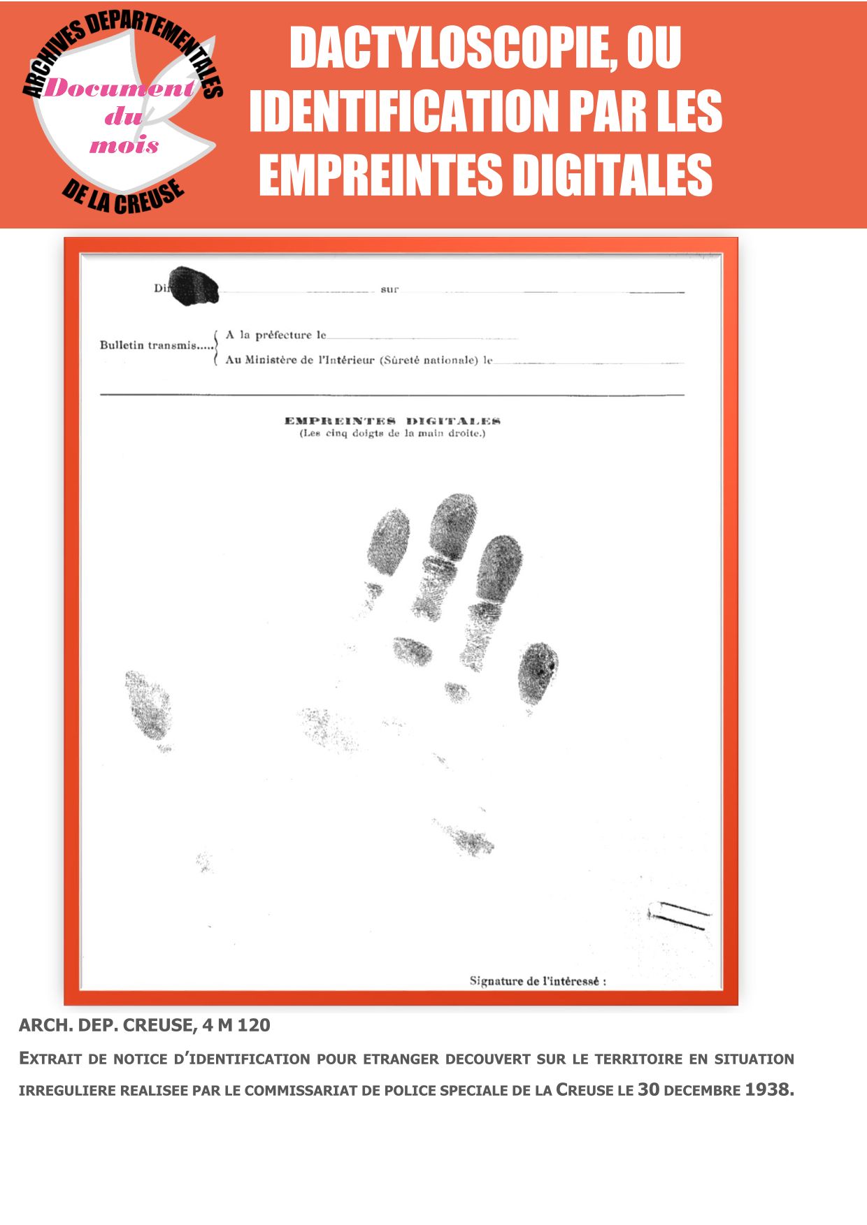 Document du mois d'octobre : Dactyloscopie... ...ou identification par les empreintes digitales Découvrez le document (2.2 Mo)