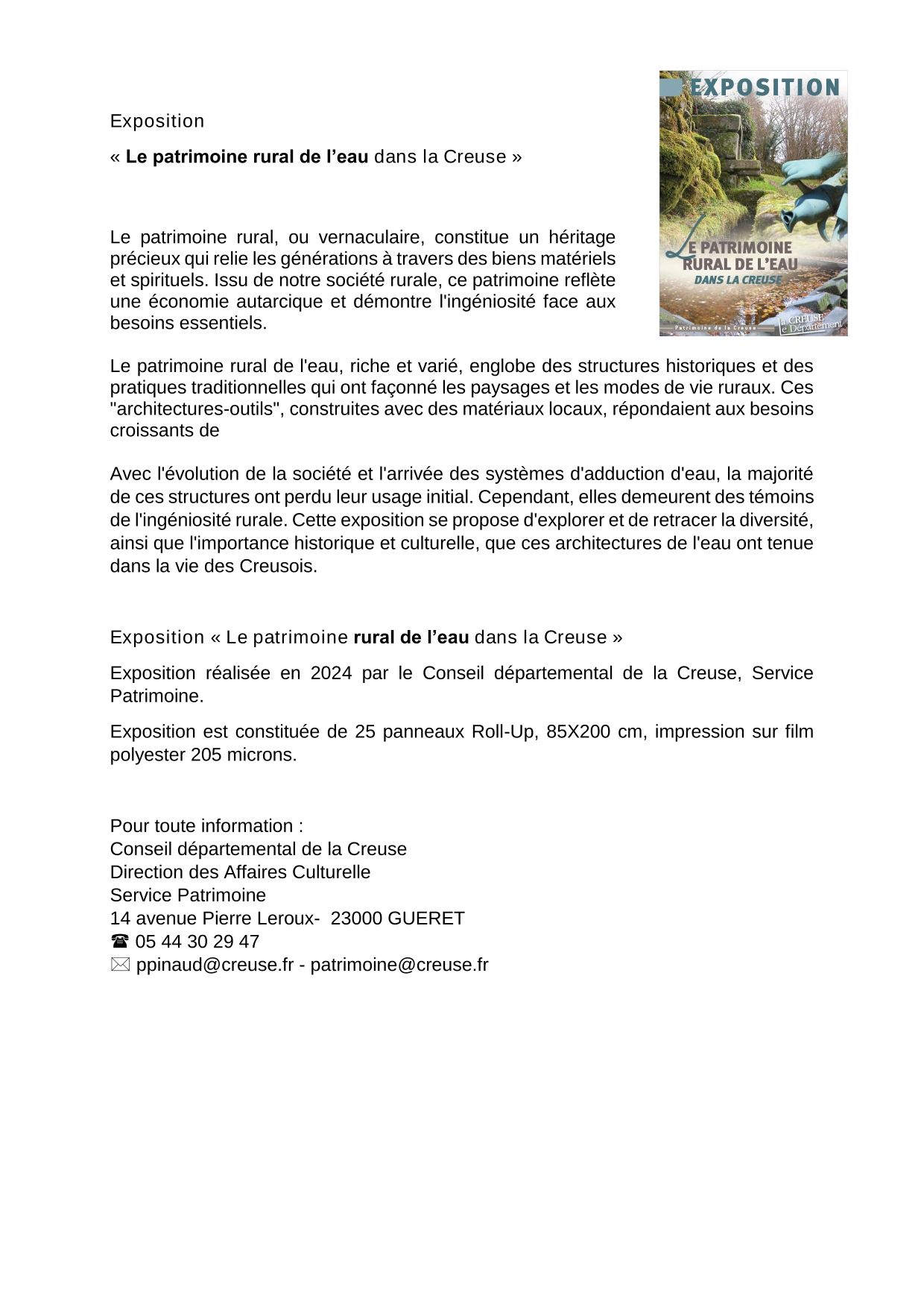 5ème Exposition réalisée en 2024 par le Conseil départemental de la Creuse, Service du Patrimoine, dans le cadre de la série "Patrimoine de la Creuse"