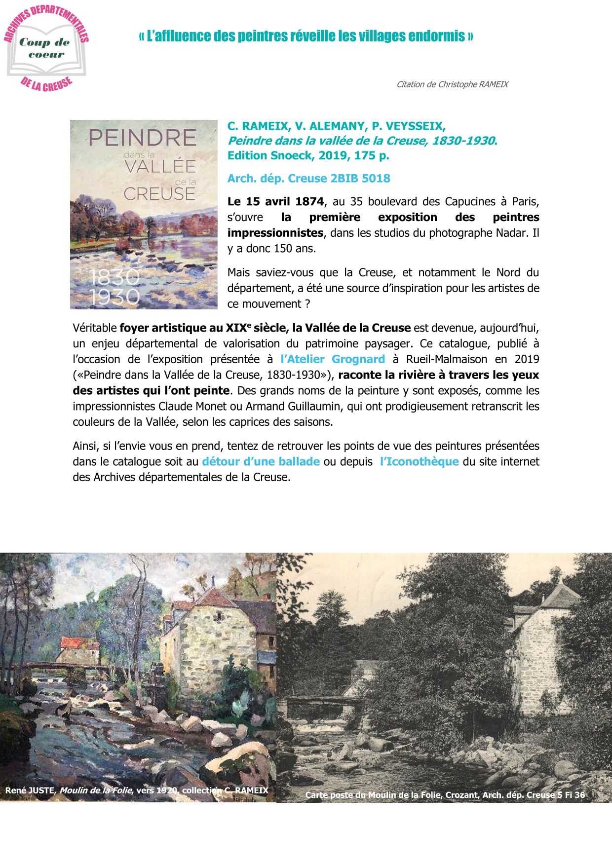Le coup de cœur de la bibliothèque du mois d'avril : L’affluence des peintres réveille les villages endormis Coup de cœur de la bibliothèque, avril 2024 (525.1 Ko)