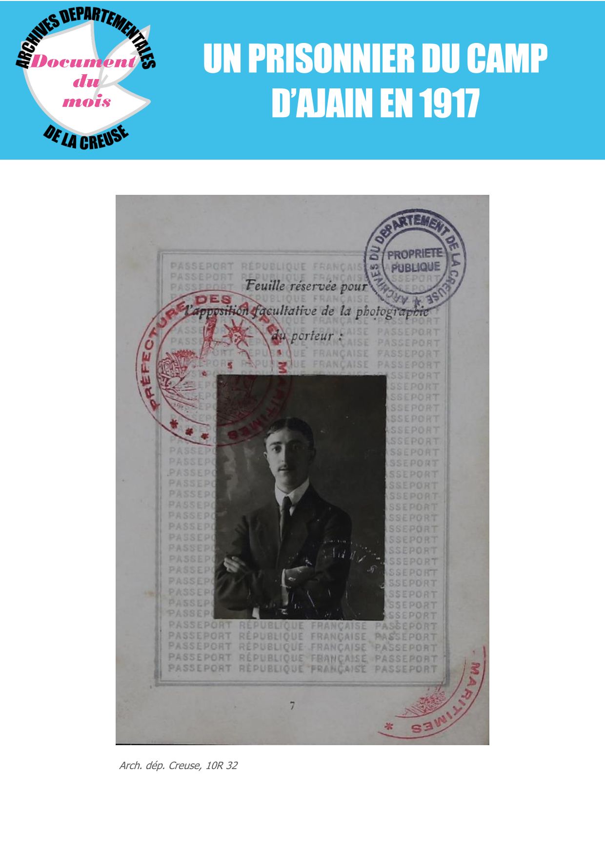 Document du mois de Mars: "Un prisonnier du camp d'Ajain en 1917"