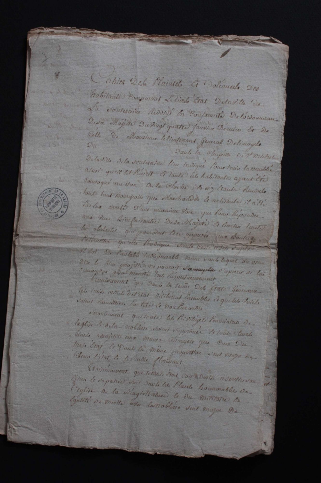 La noblesse et le clergé devaient présenter des cahiers par bailliage. Pour le tiers état, c’est l’assemblée du bailliage qui rédige une synthèse à partir des cahiers rédigés par les paroisses et les corporations.
