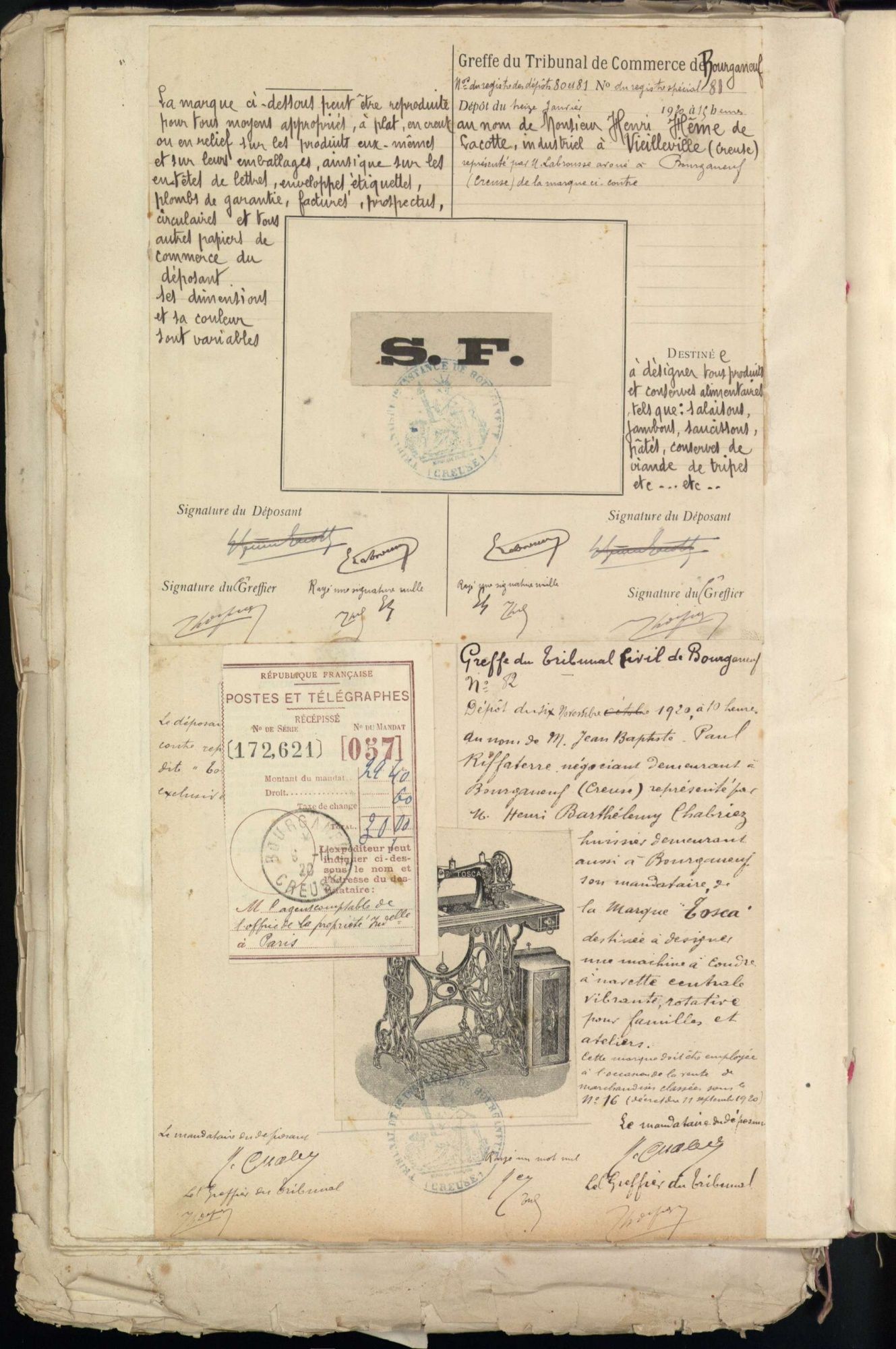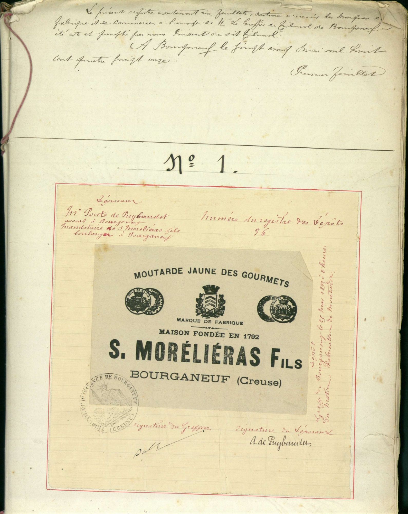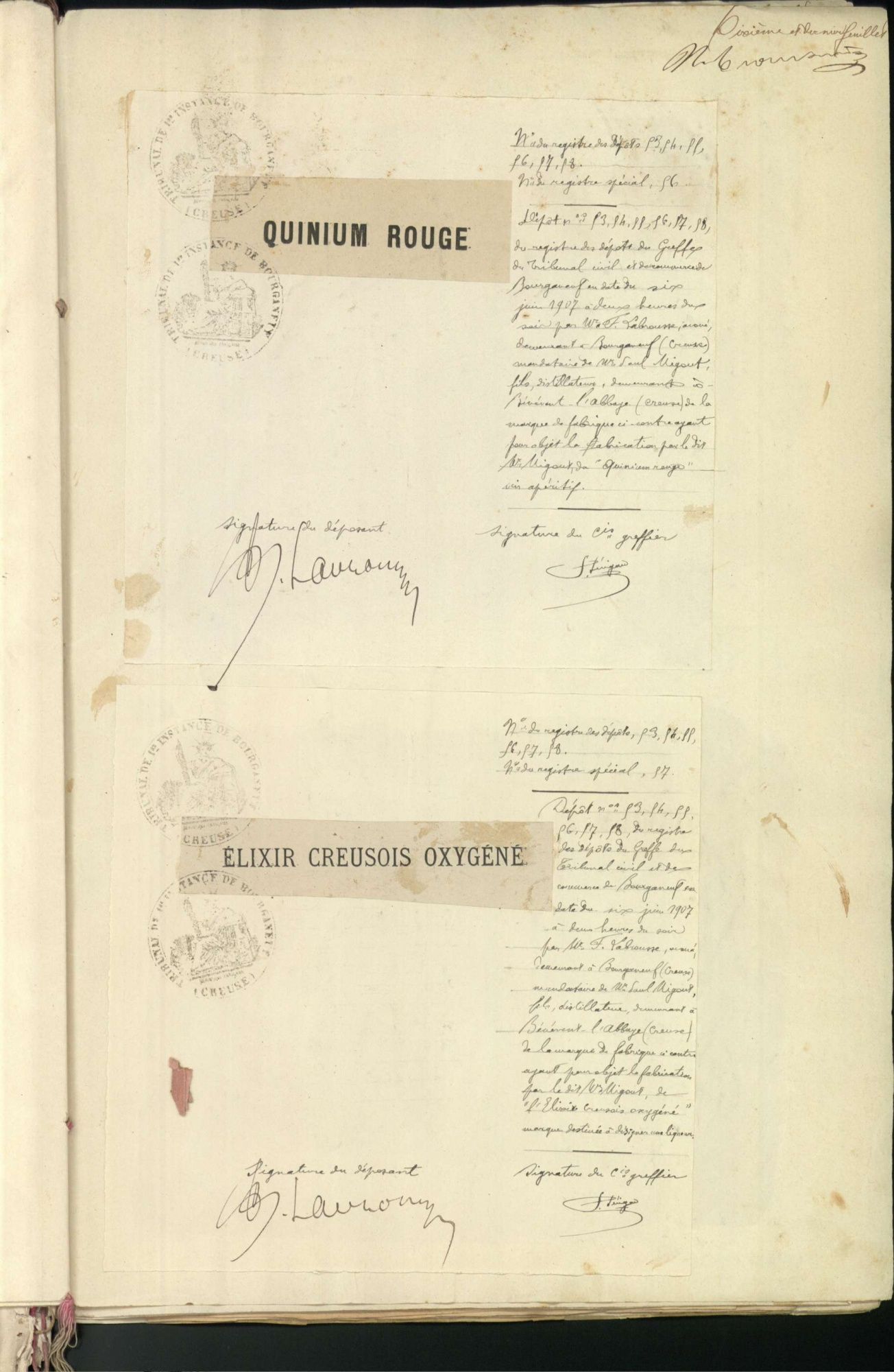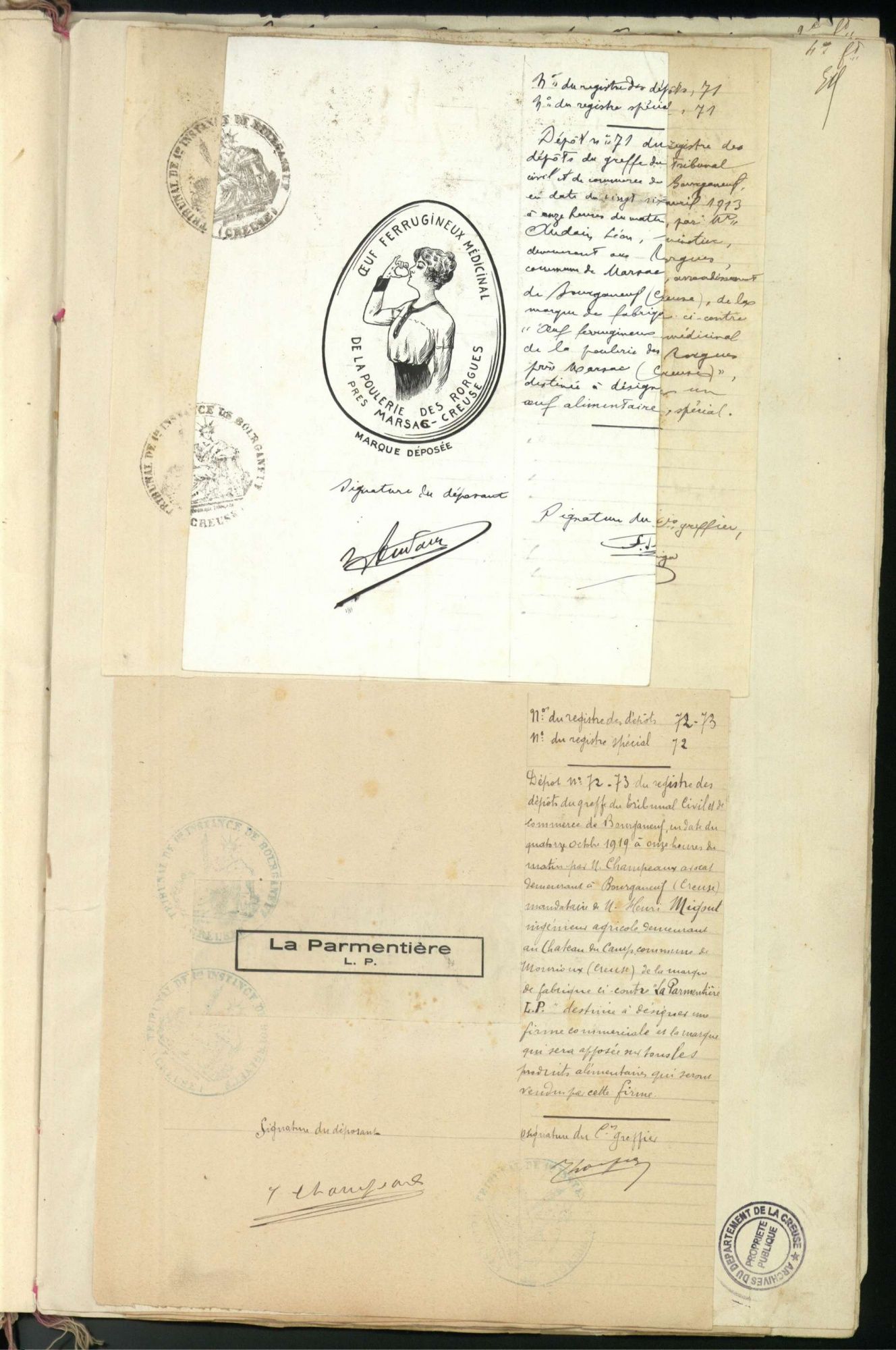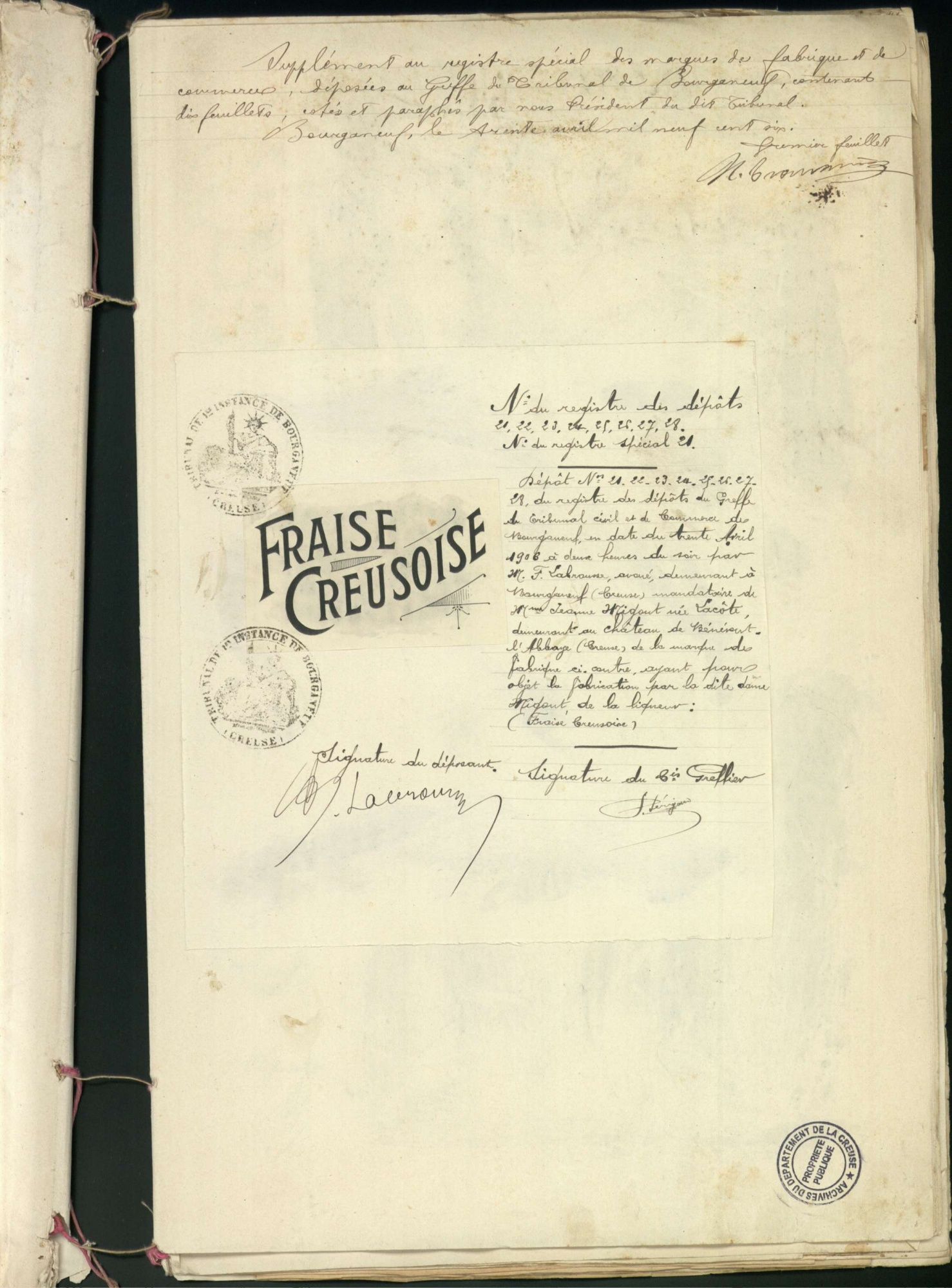 Marques de fabrique déposées au Tribunal de Commerce de la Creuse.