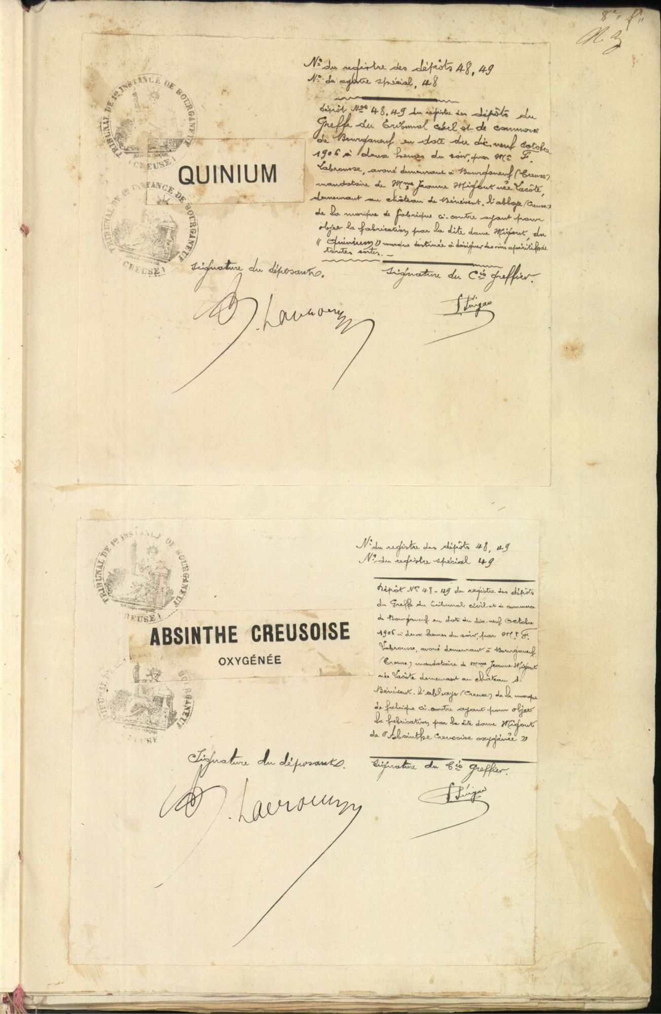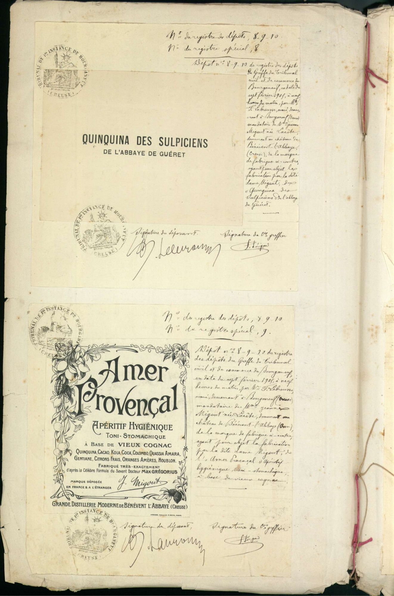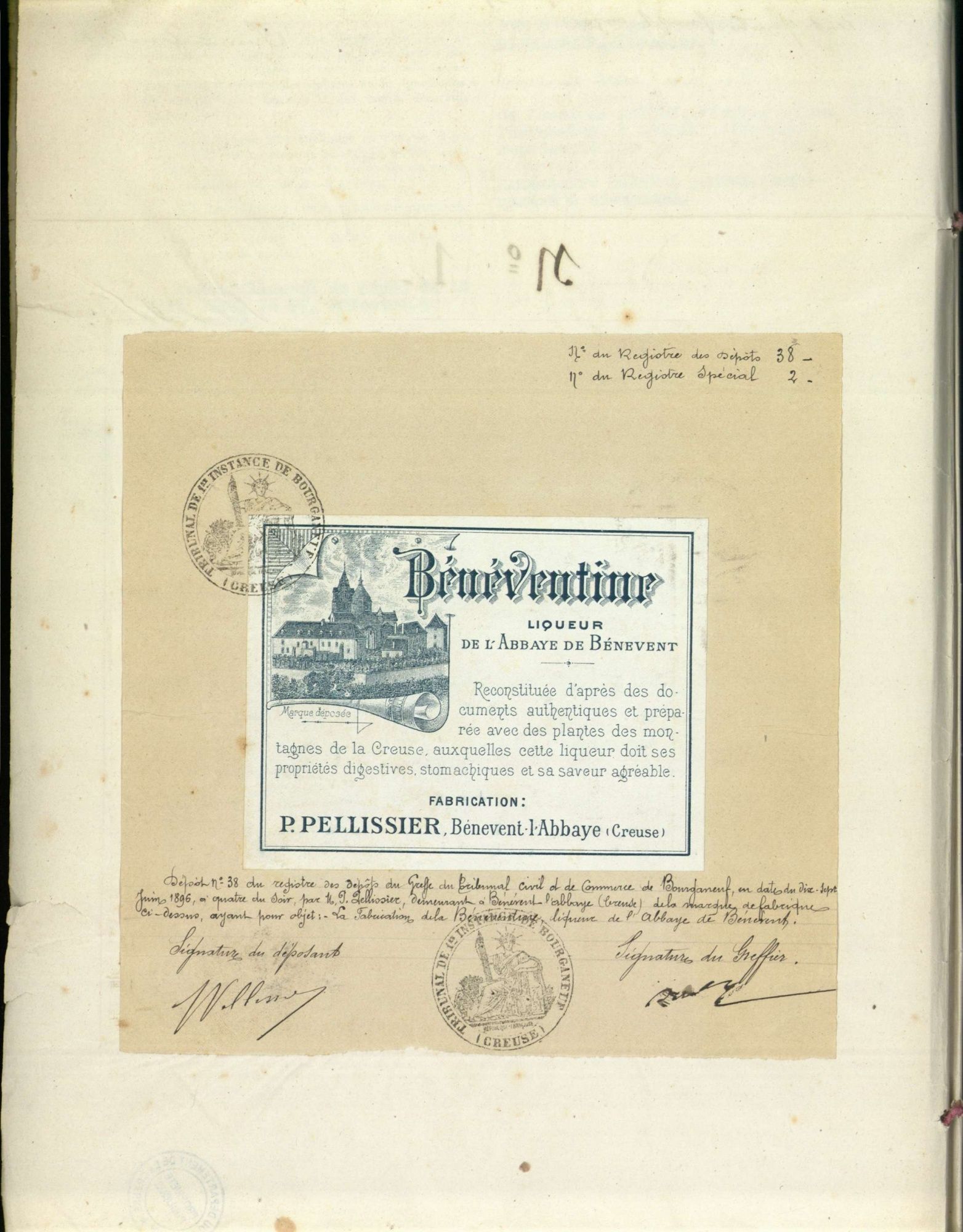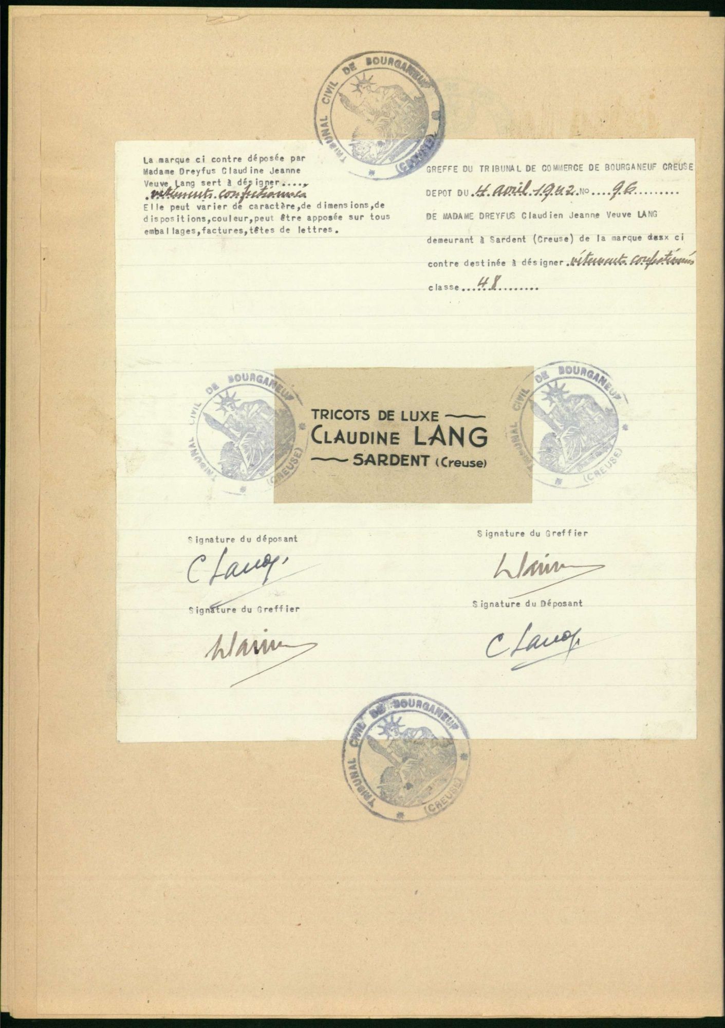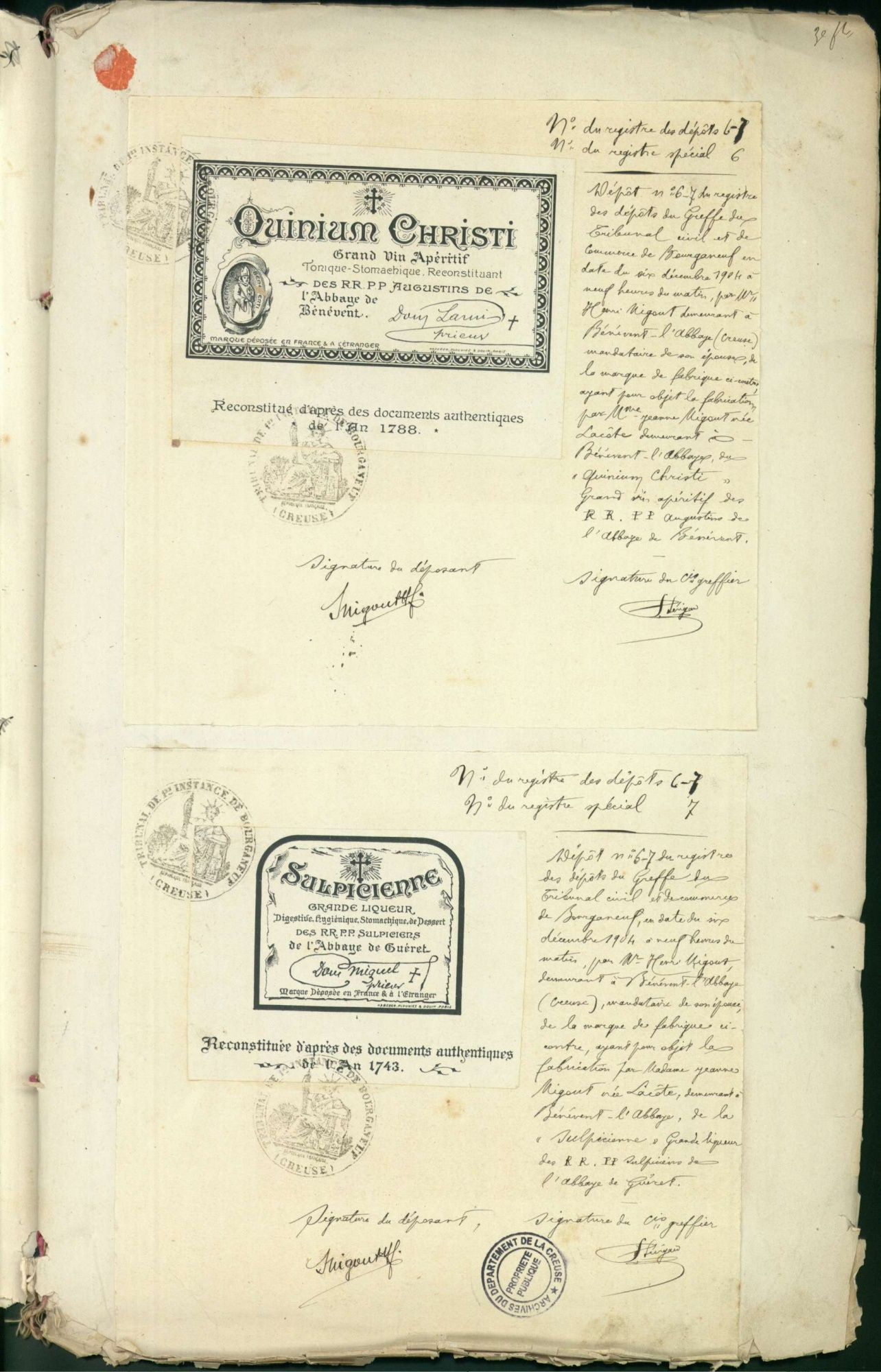 Marques de fabrique déposées au Tribunal de Commerce de la Creuse.