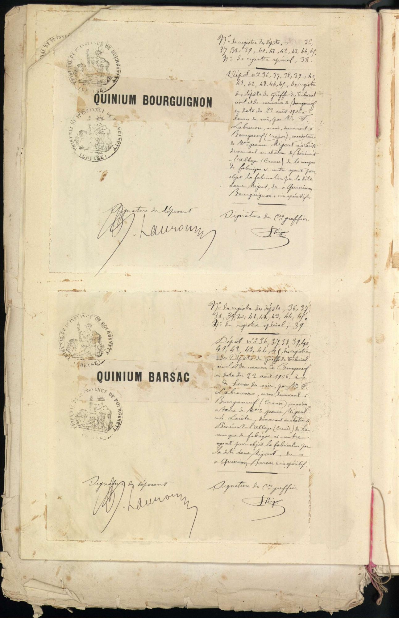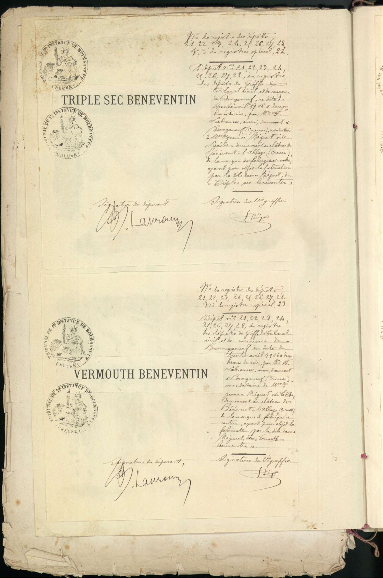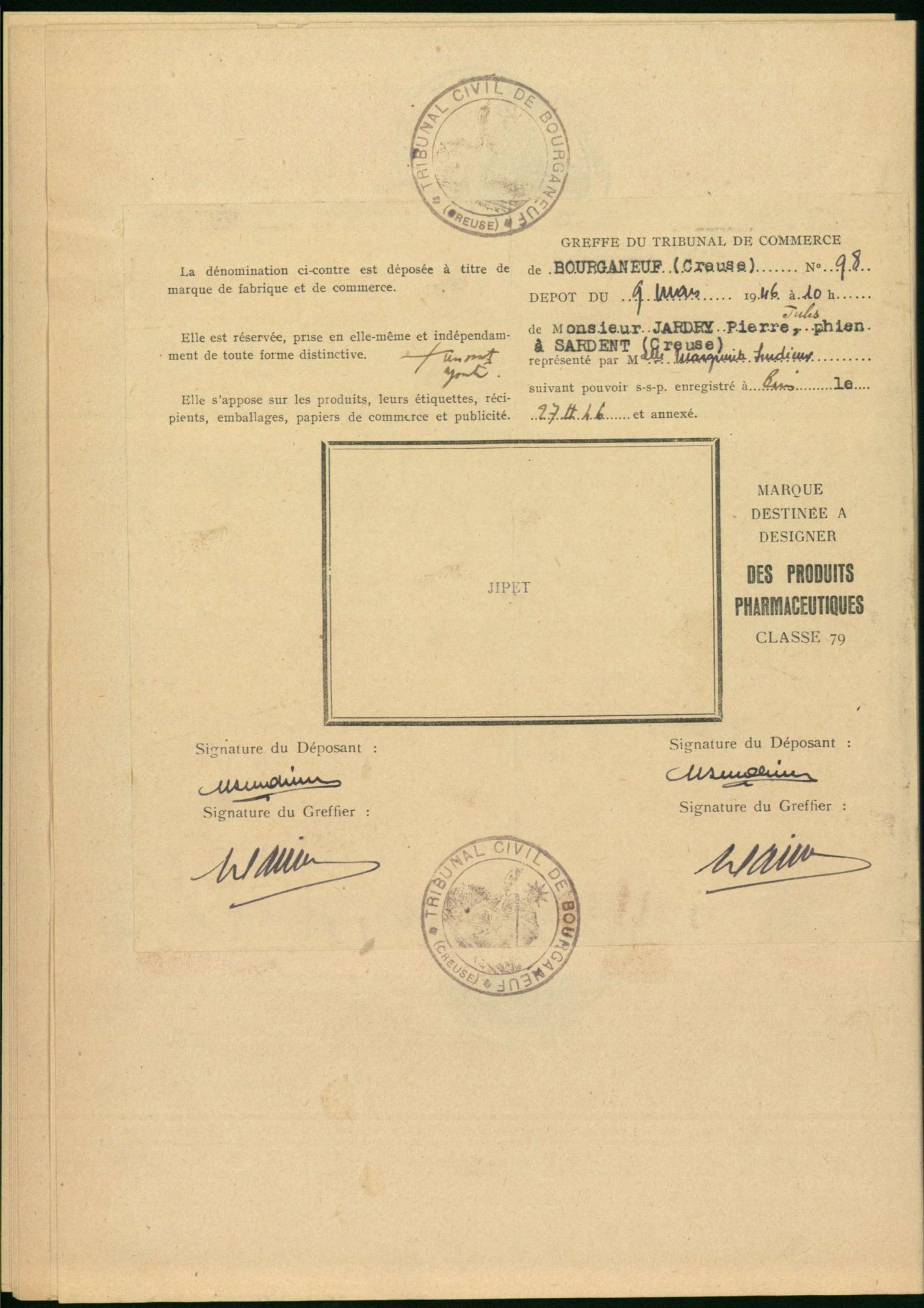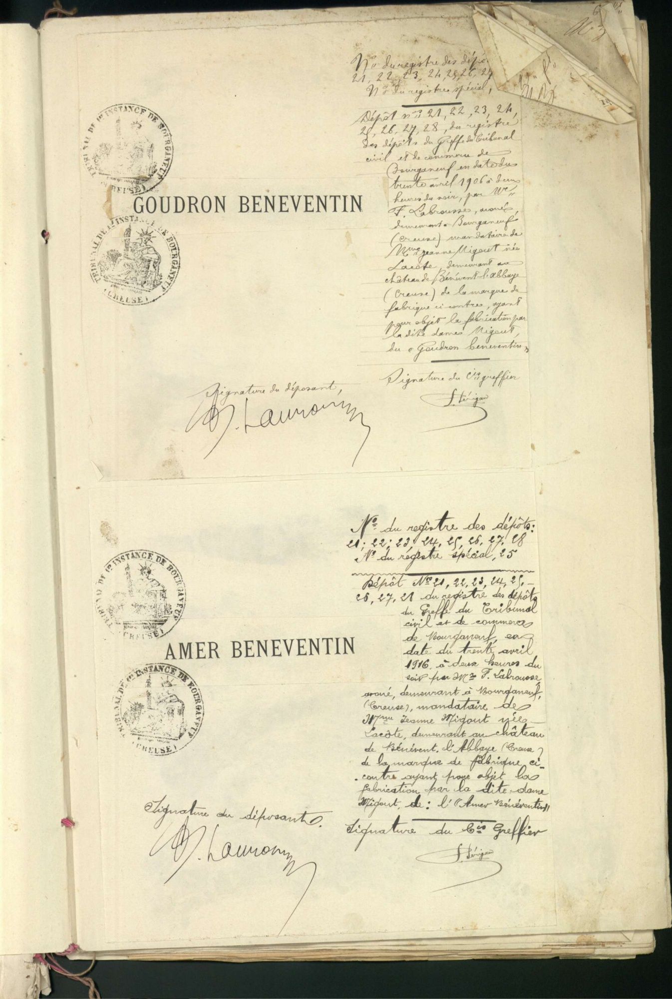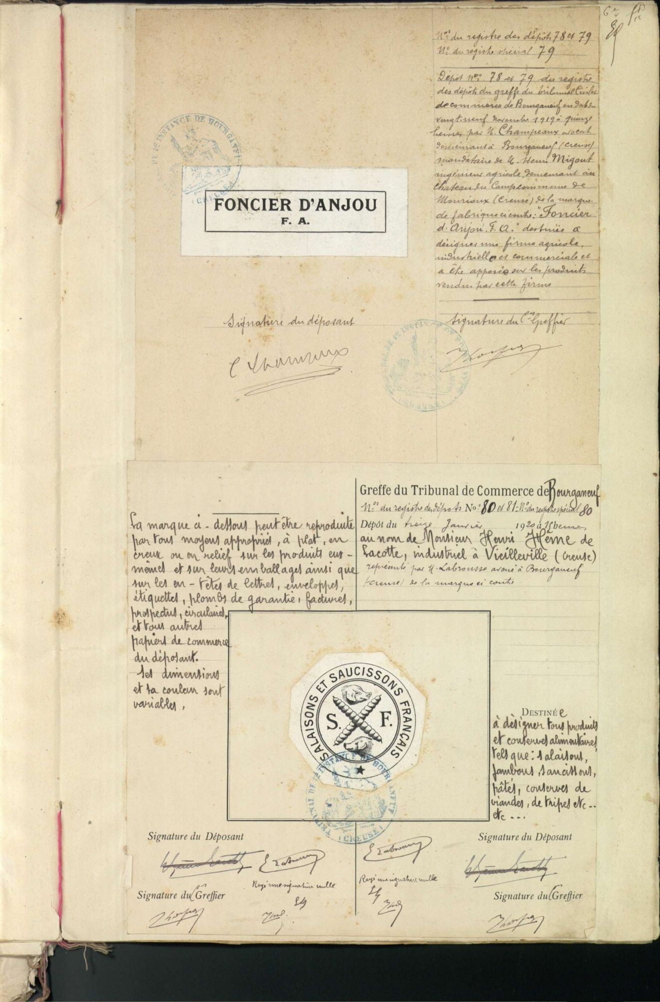 Marques de fabrique déposées au Tribunal de Commerce de la Creuse.