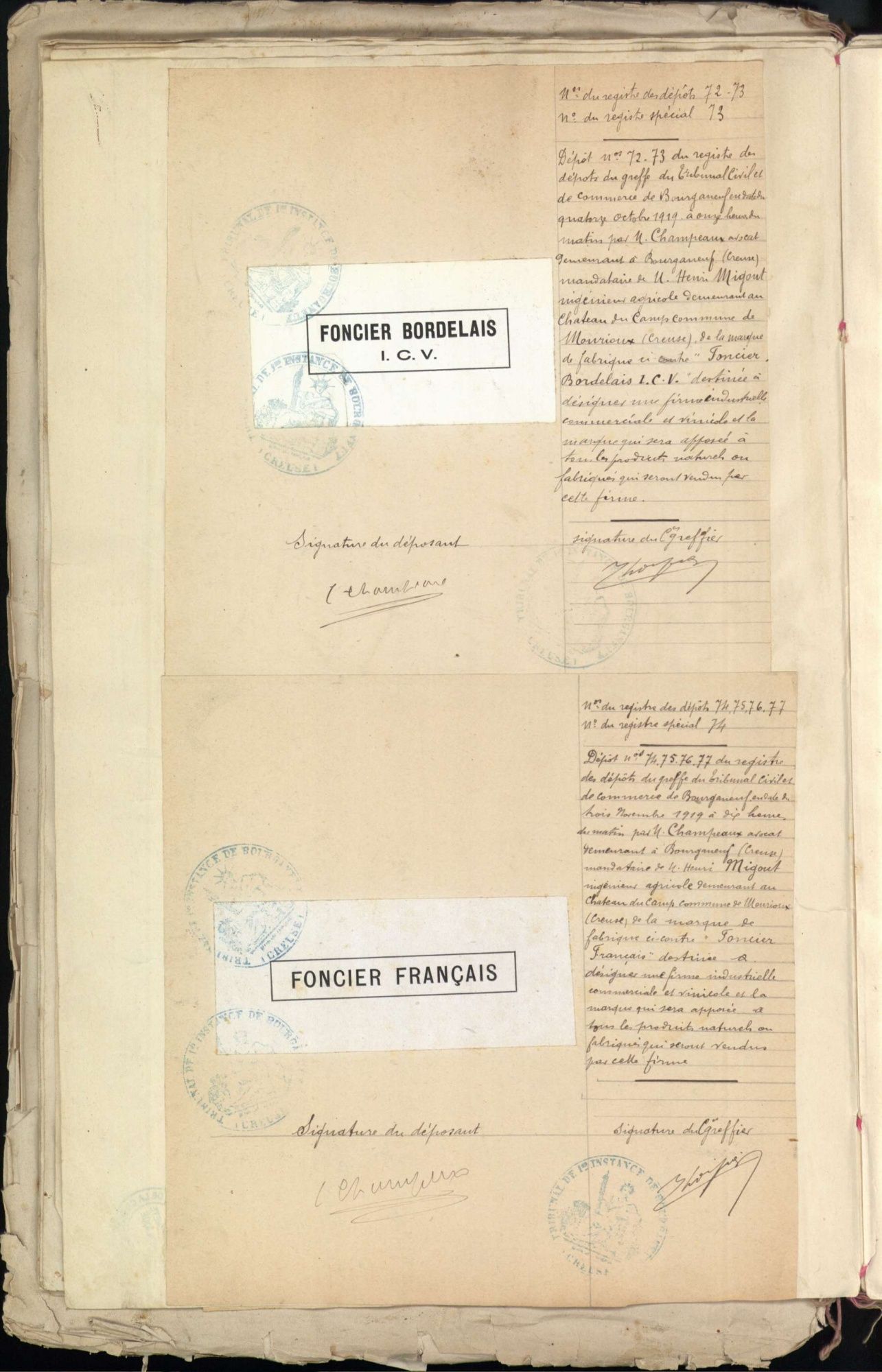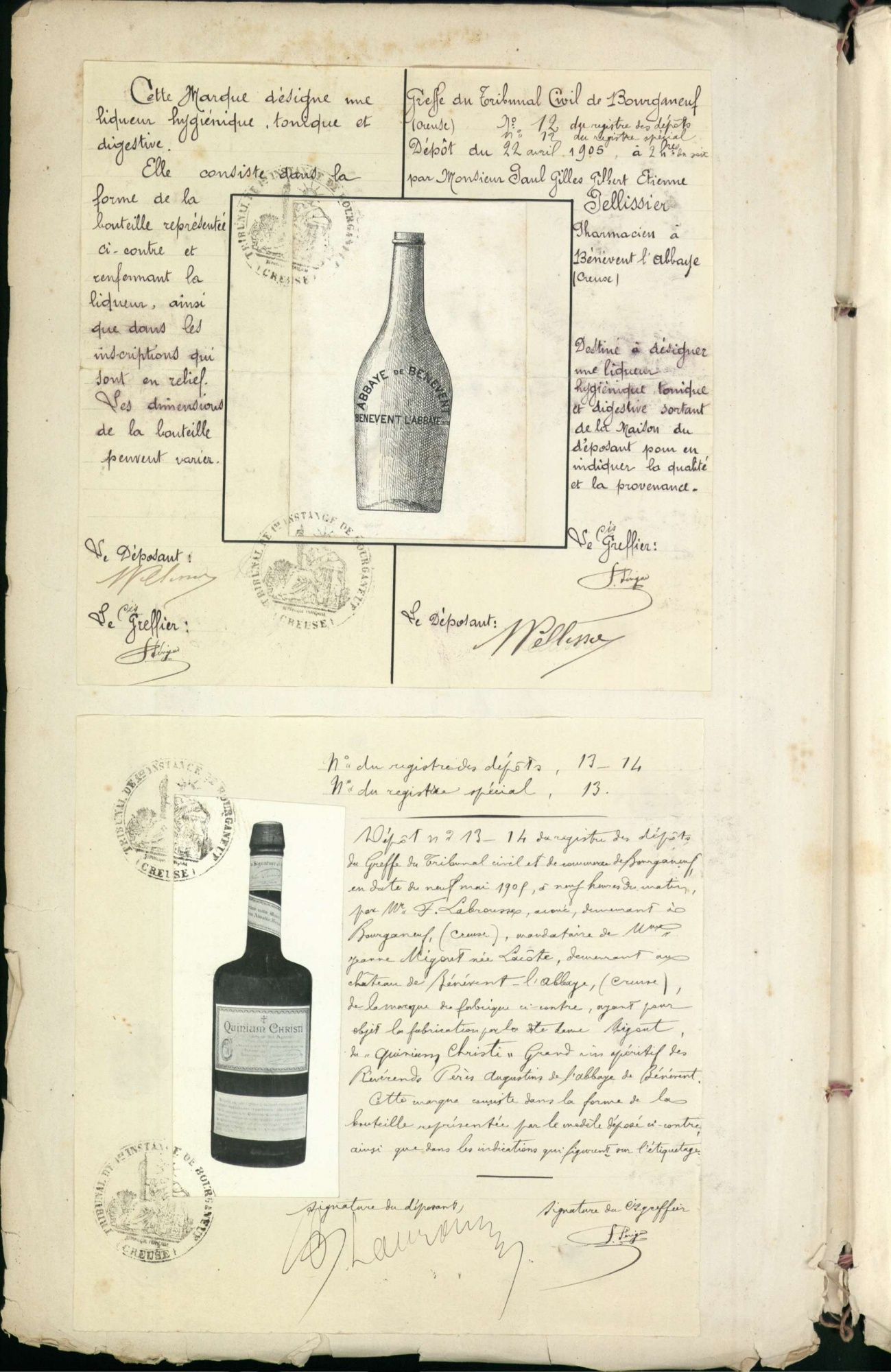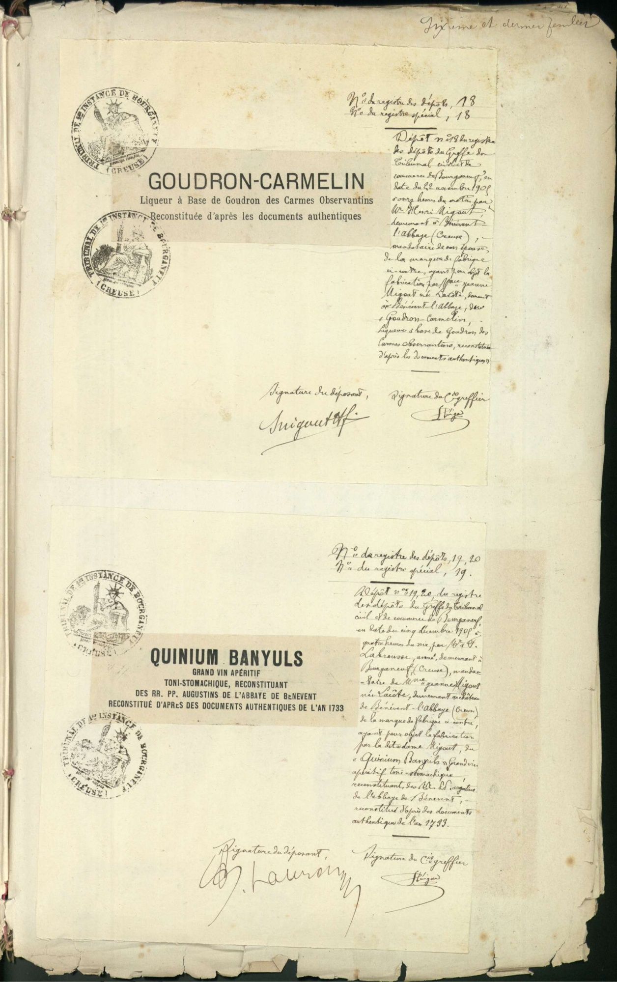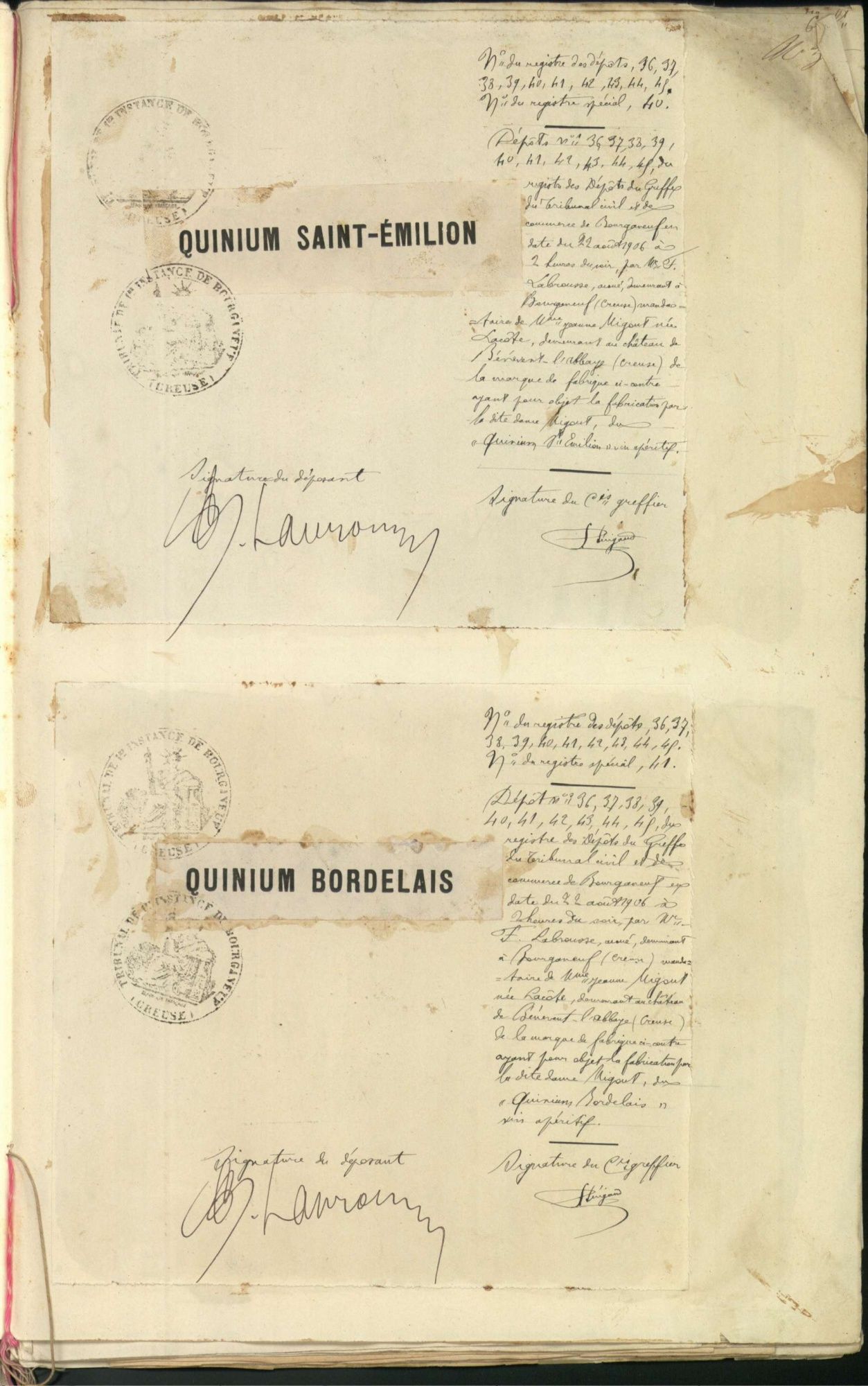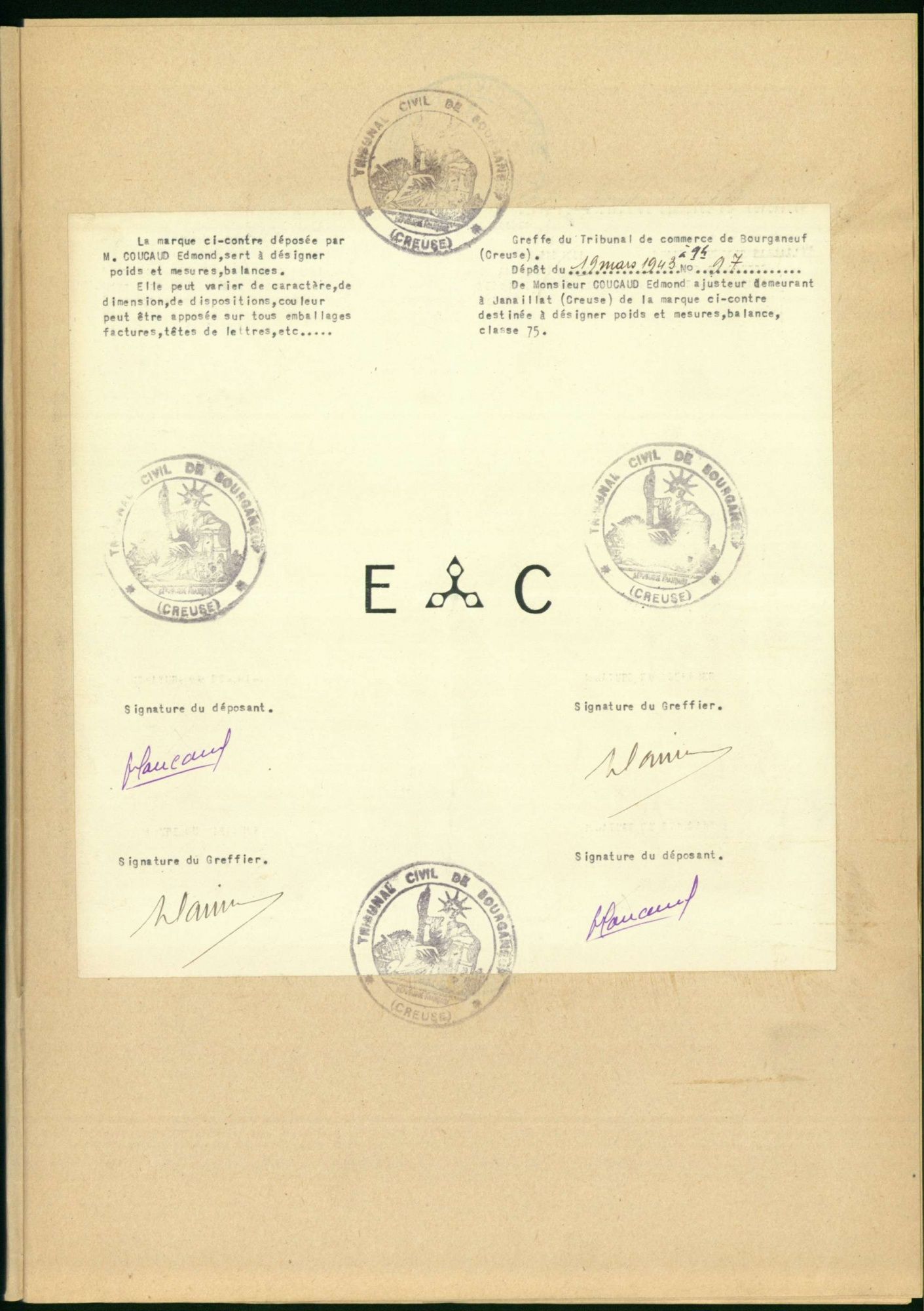 Marques de fabrique déposées au Tribunal de Commerce de la Creuse.