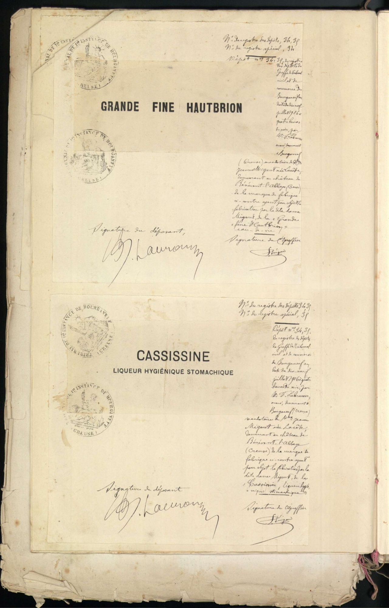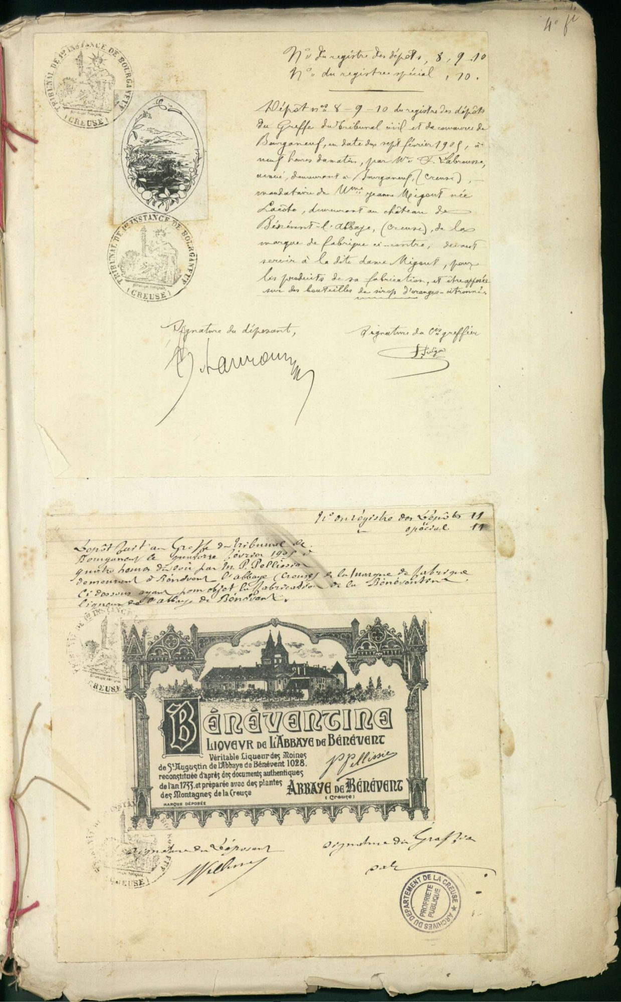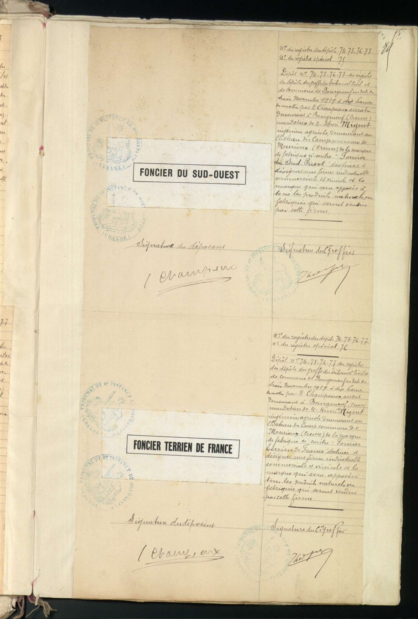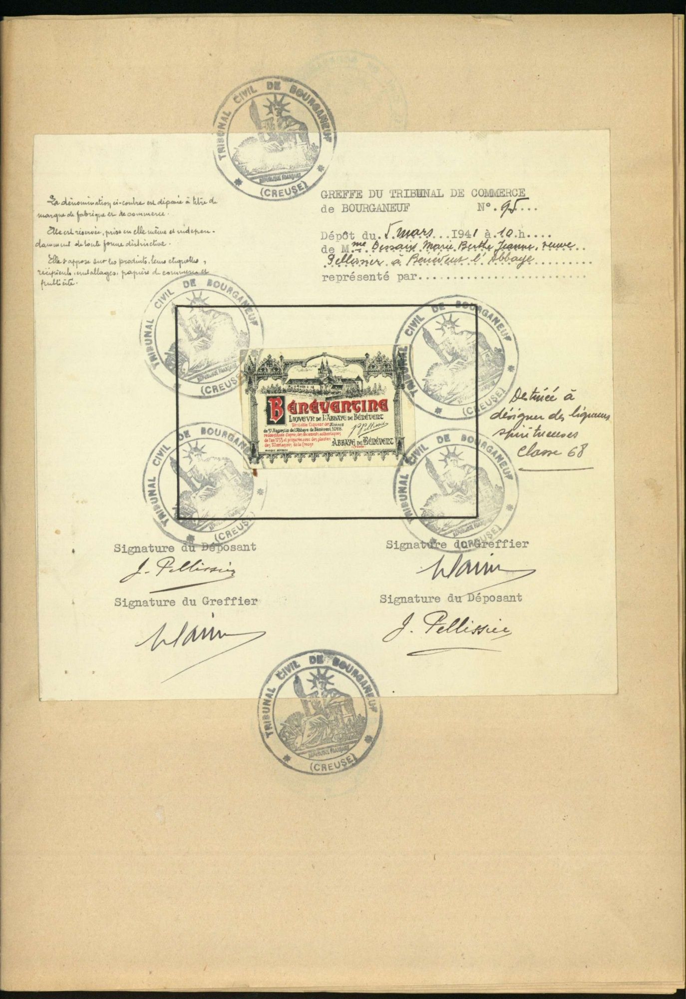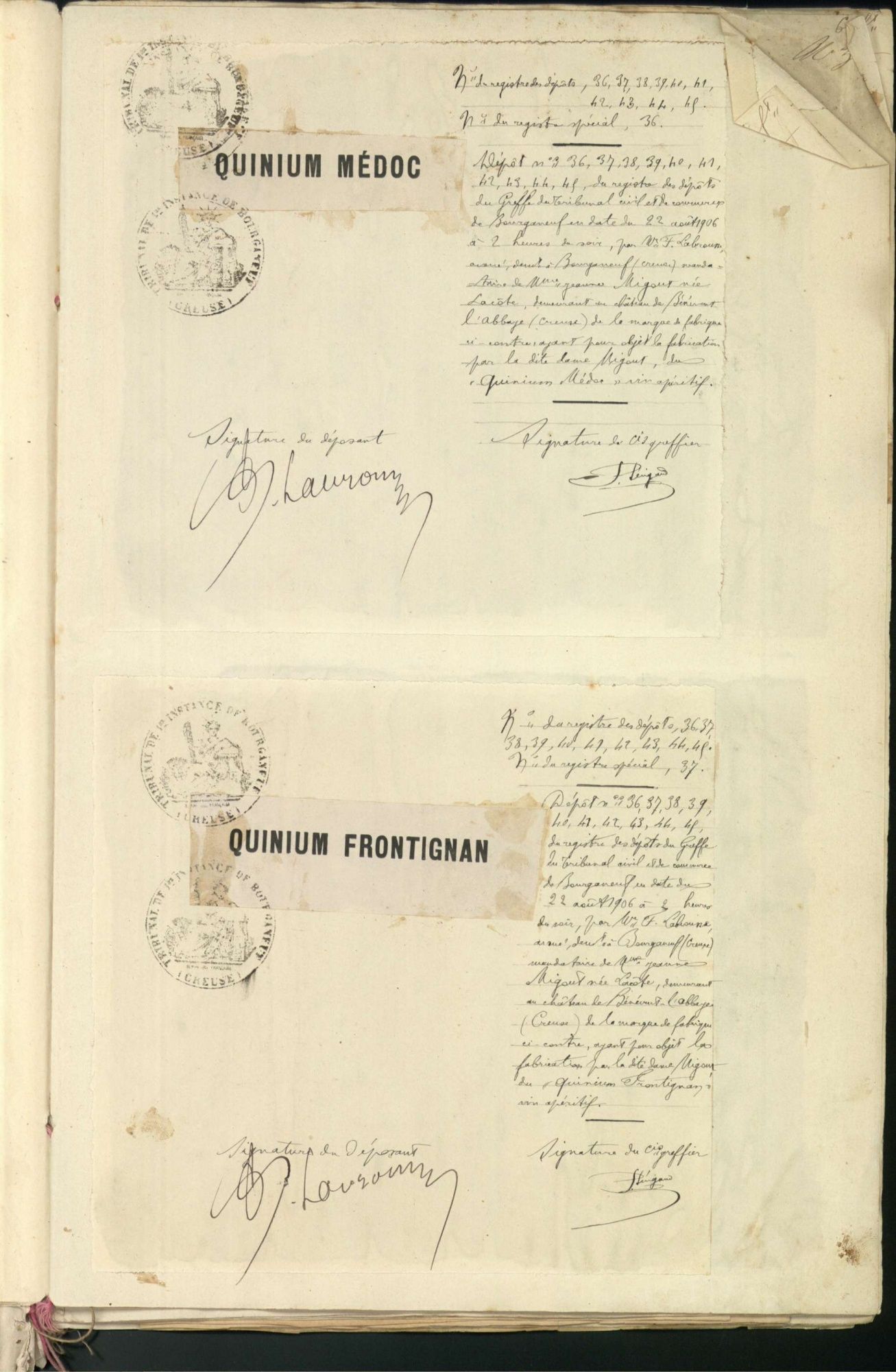 Marques de fabrique déposées au Tribunal de Commerce de la Creuse.