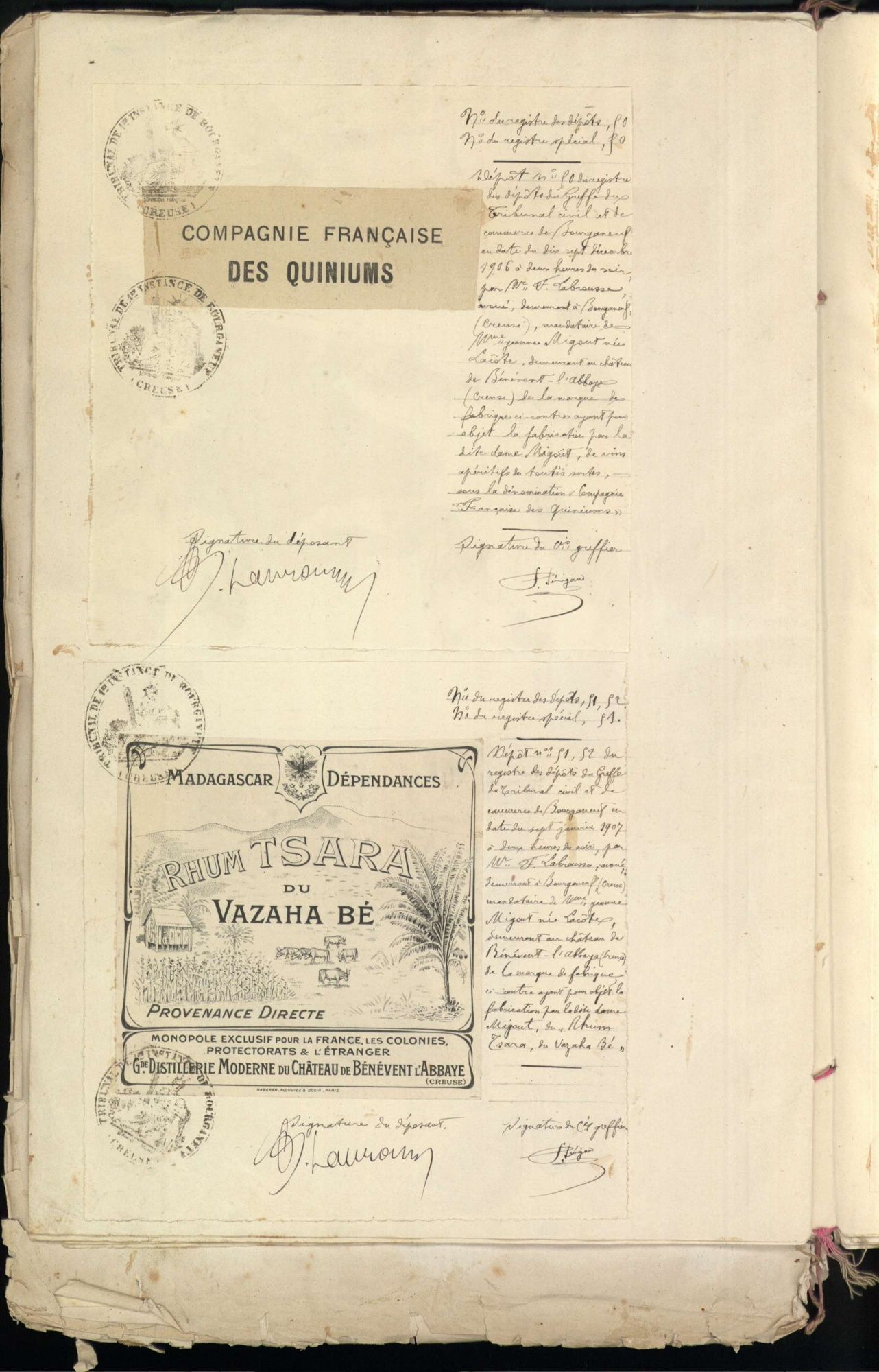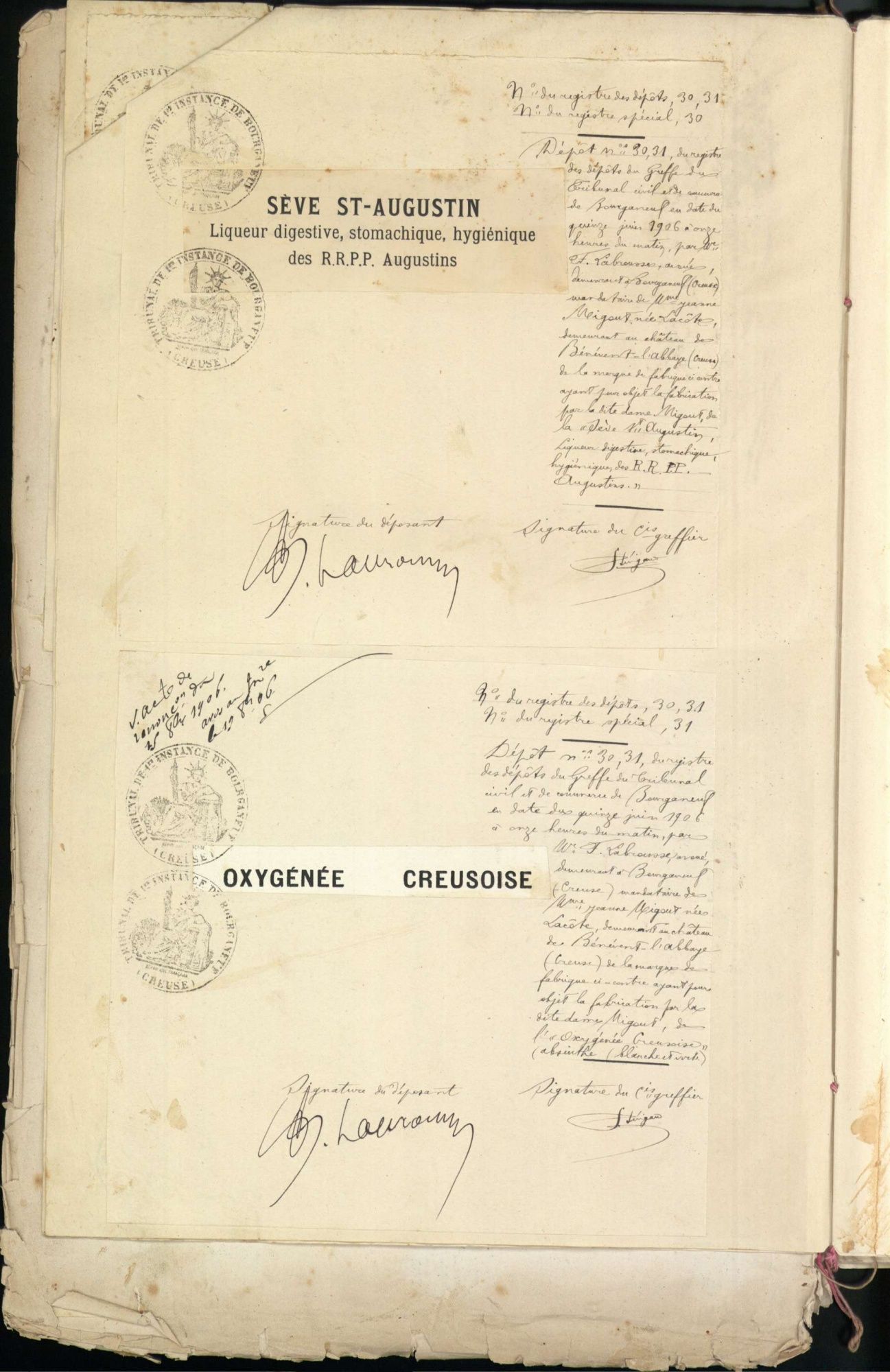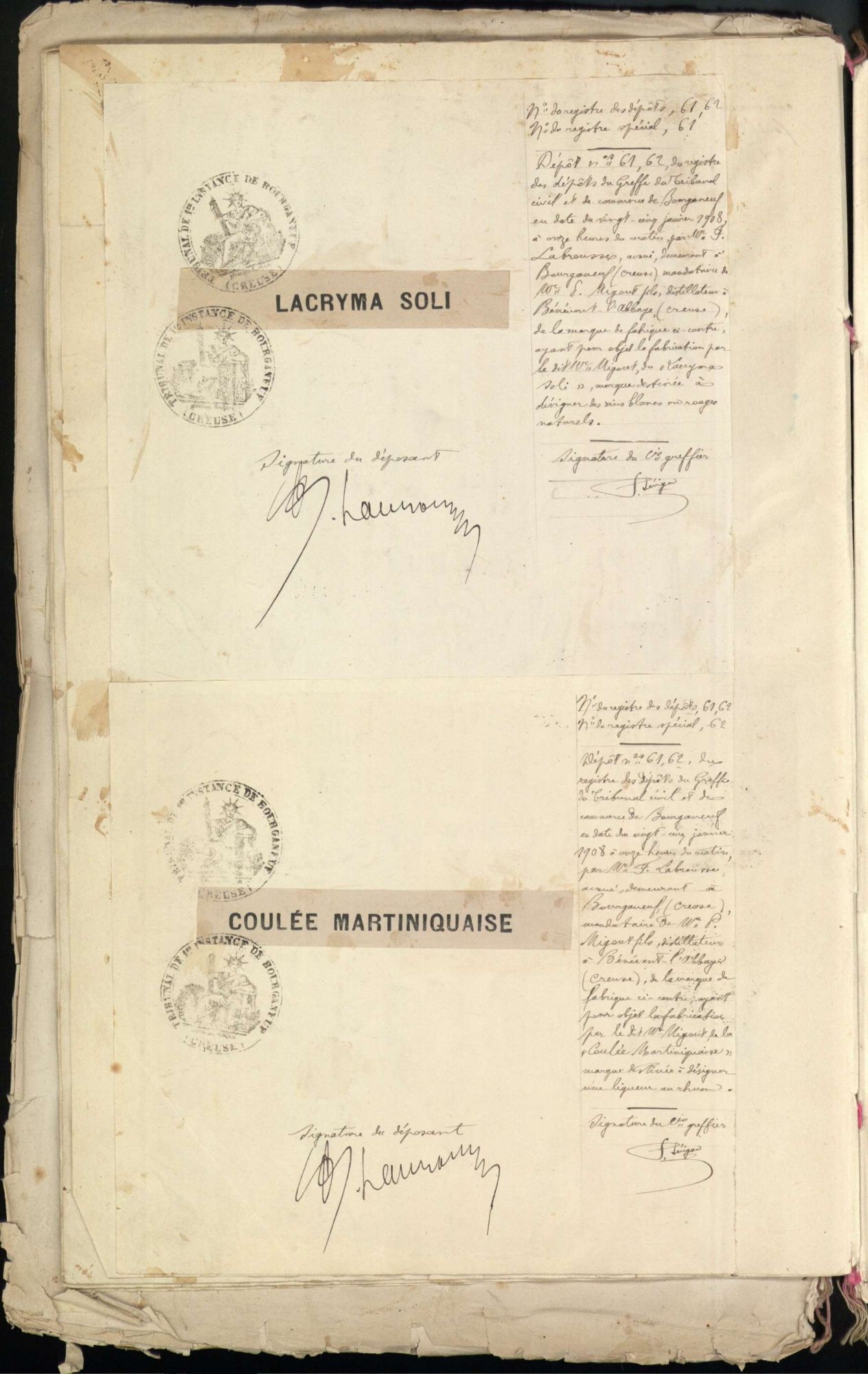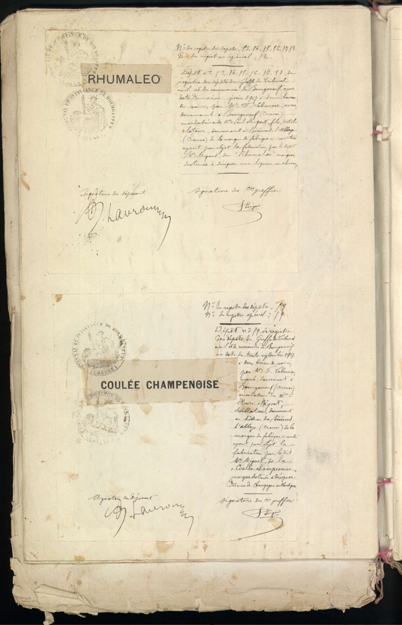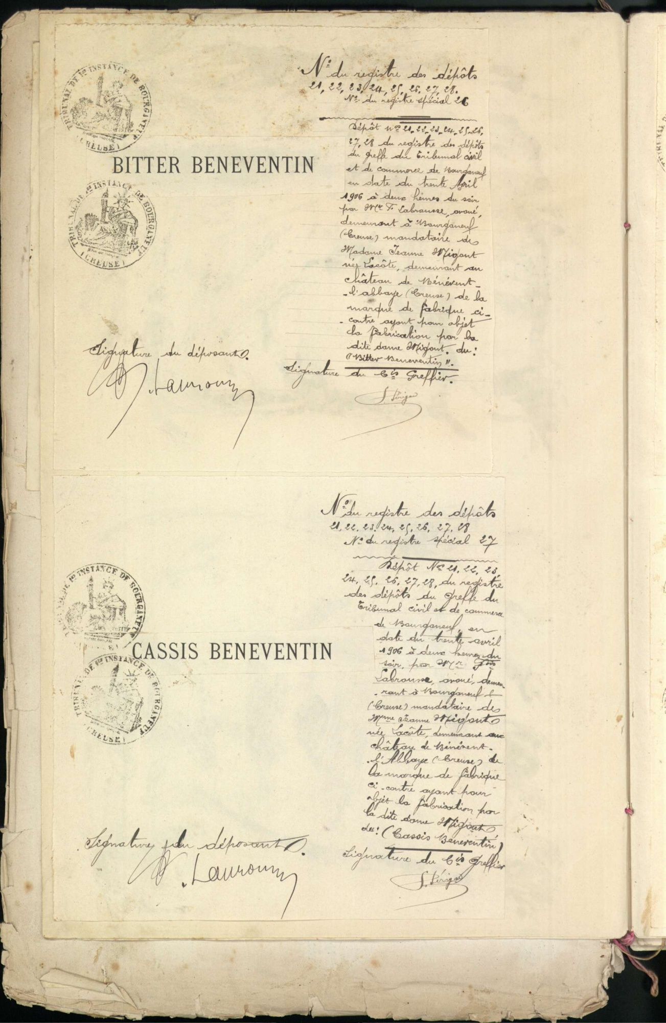 Marques de fabrique déposées au Tribunal de Commerce de la Creuse.