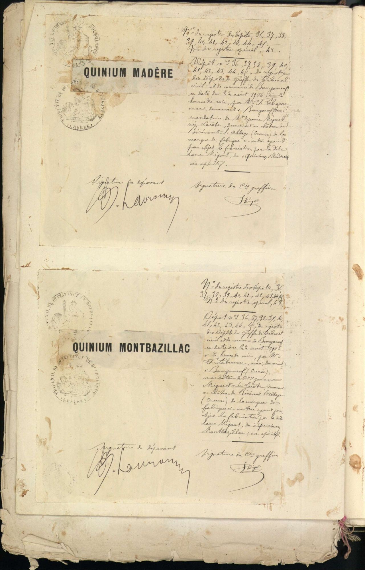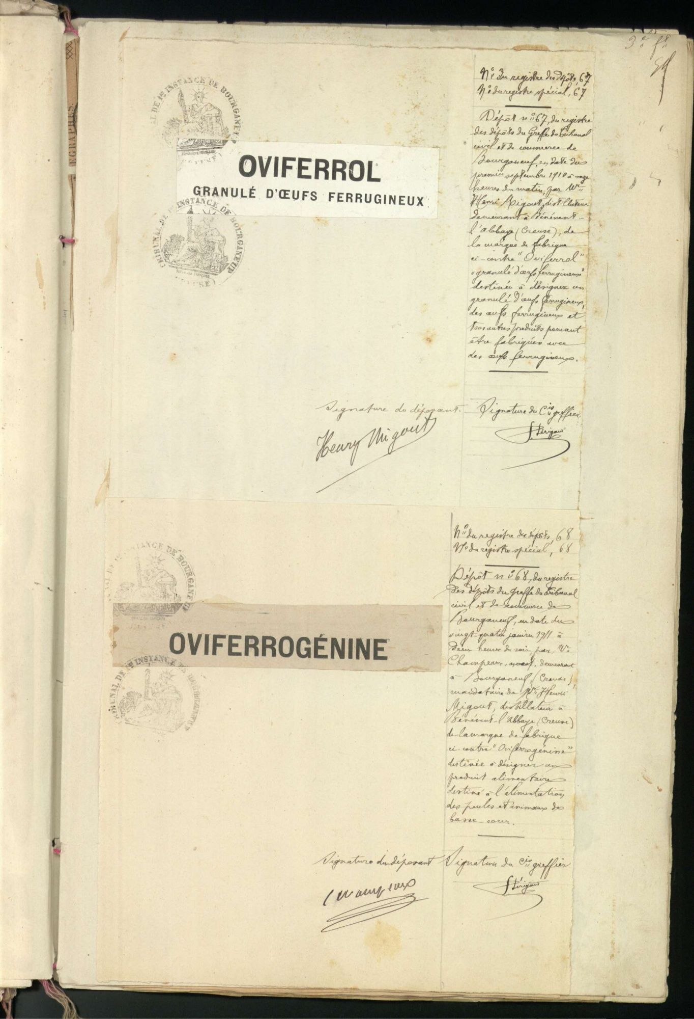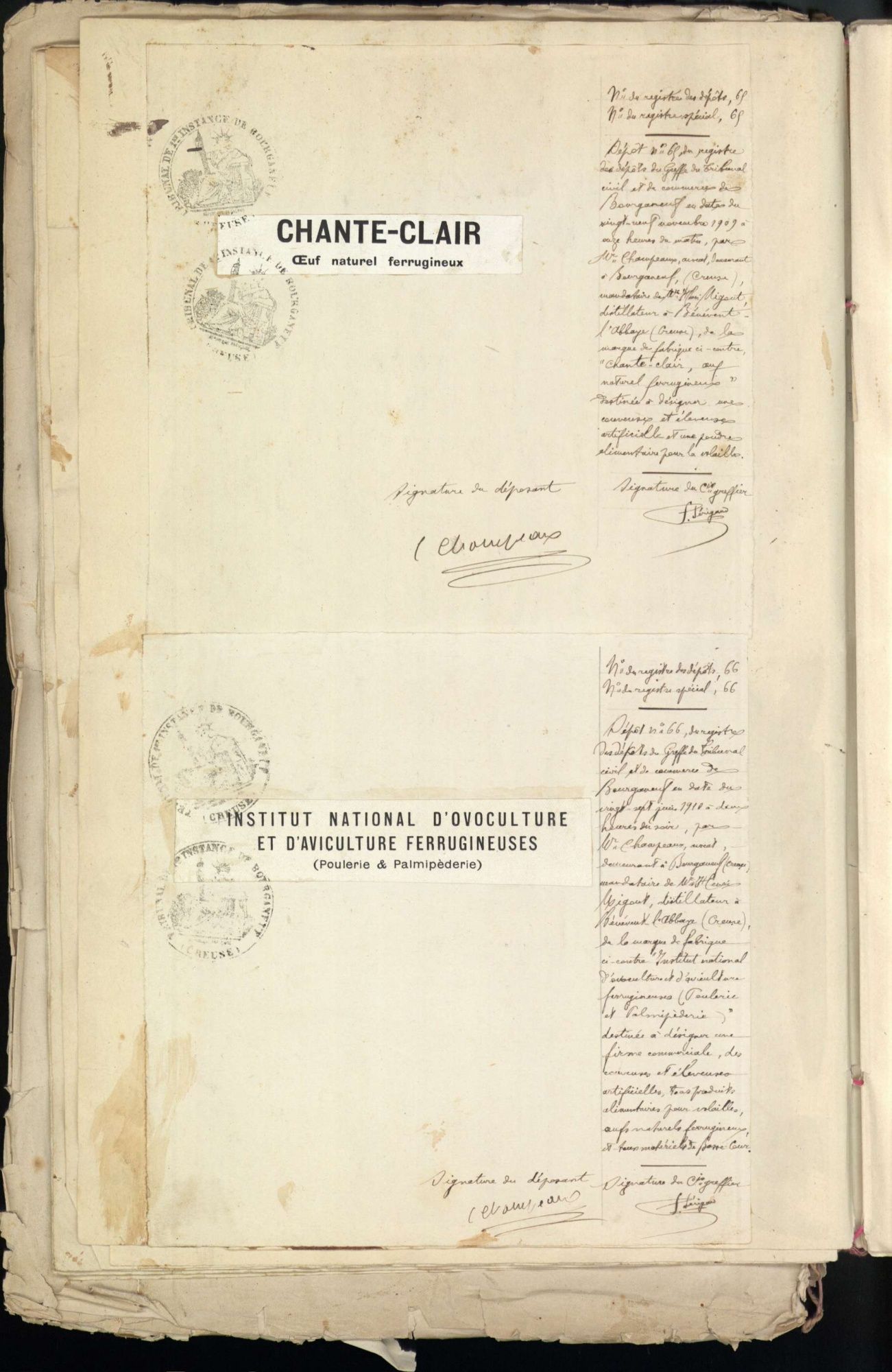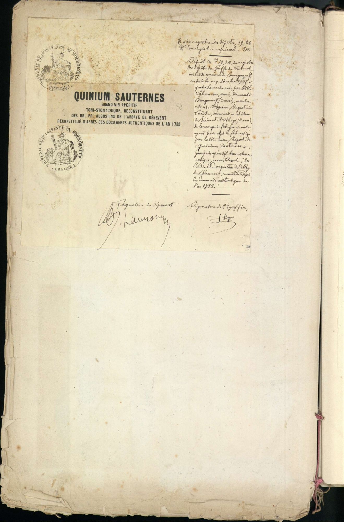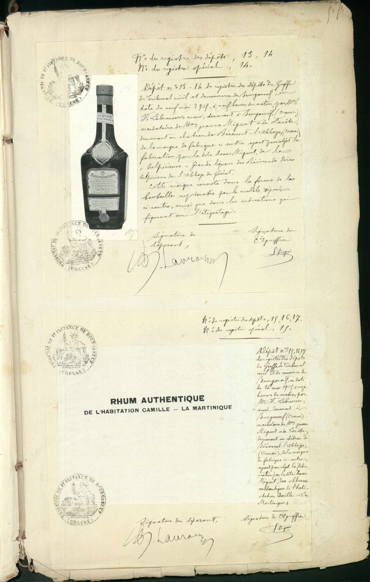 Marques de fabrique déposées au Tribunal de Commerce de la Creuse.