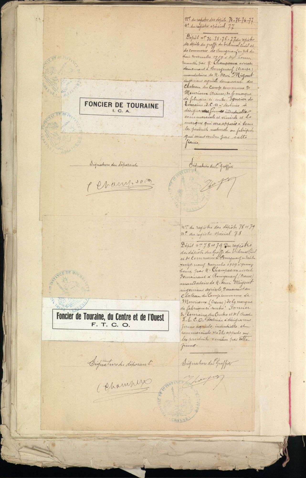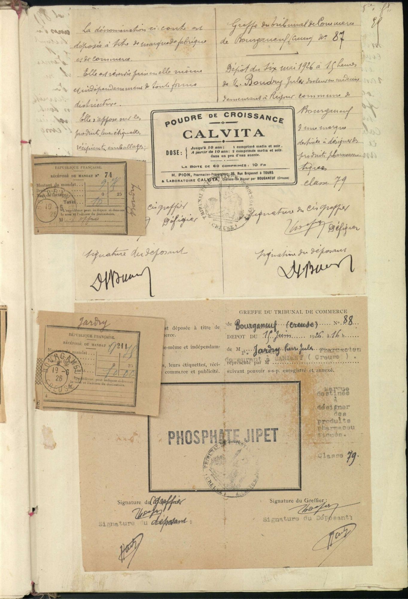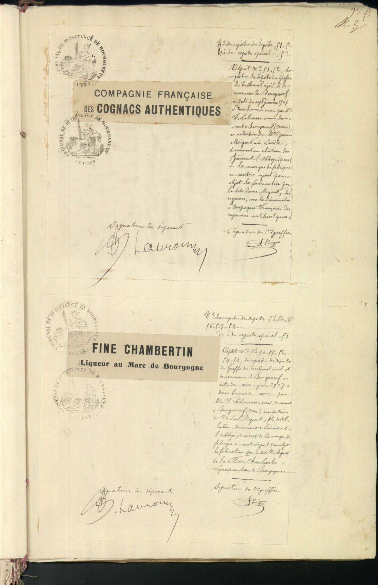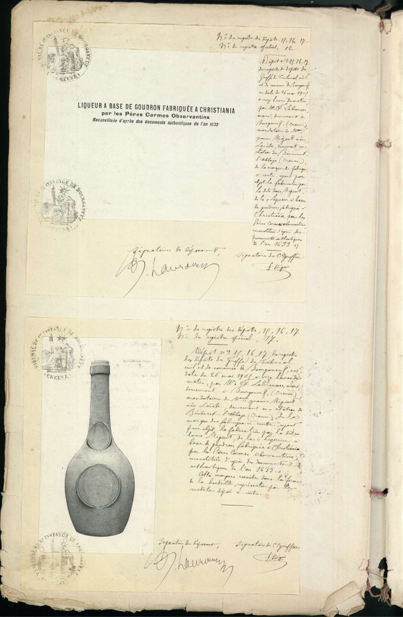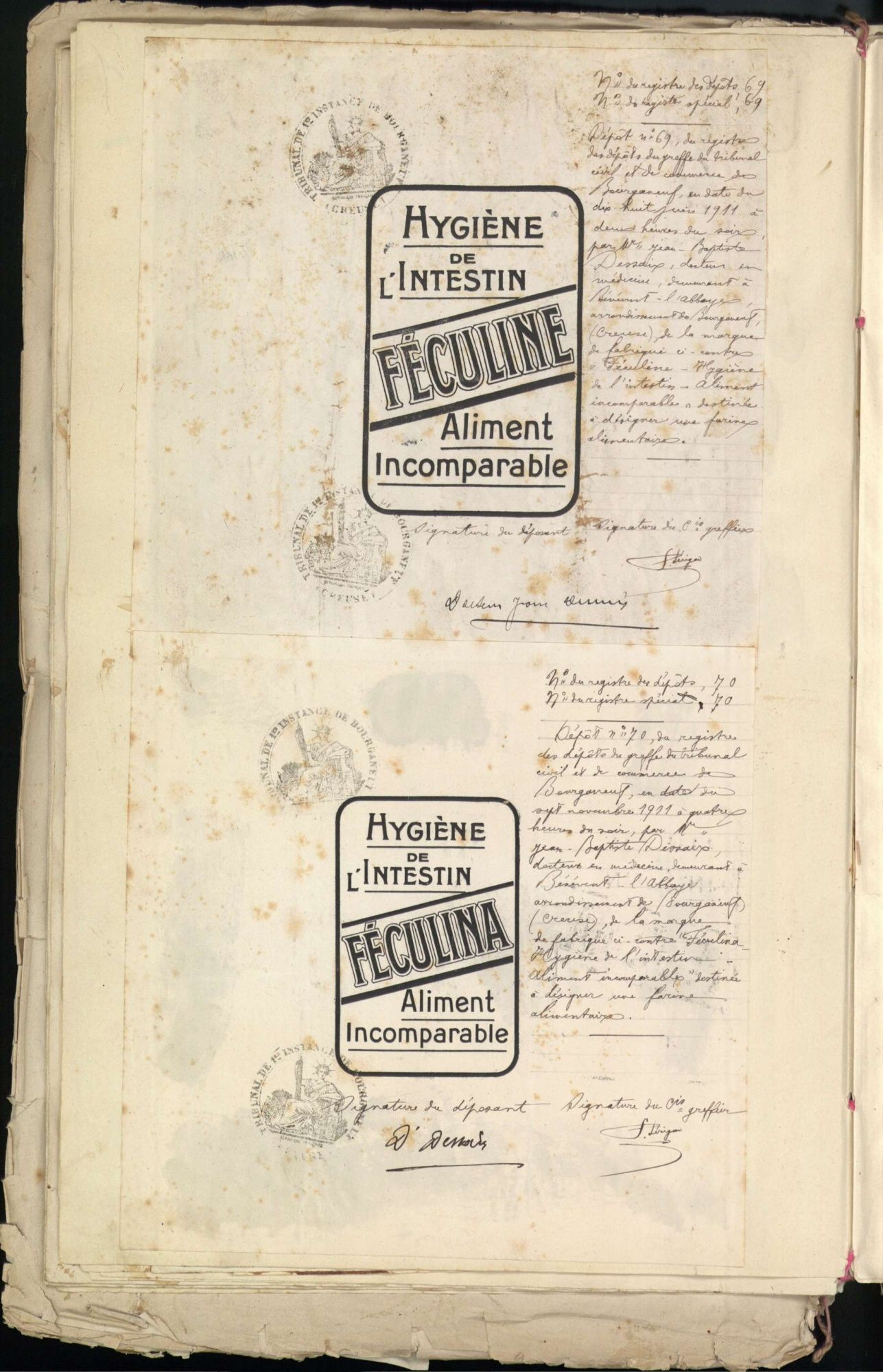 Marques de fabrique déposées au Tribunal de Commerce de la Creuse.