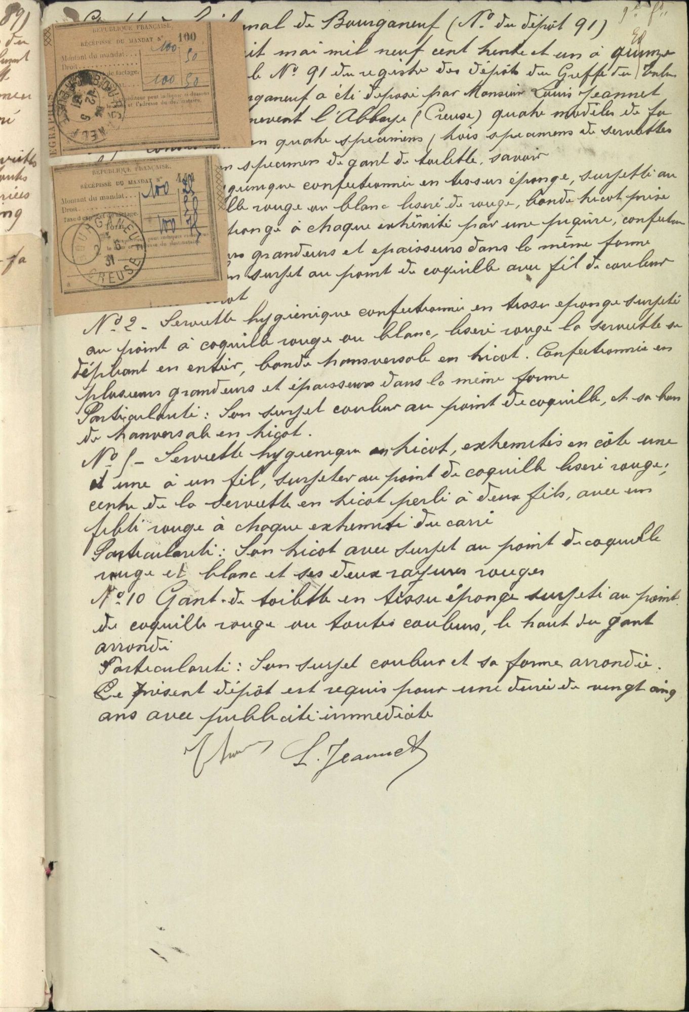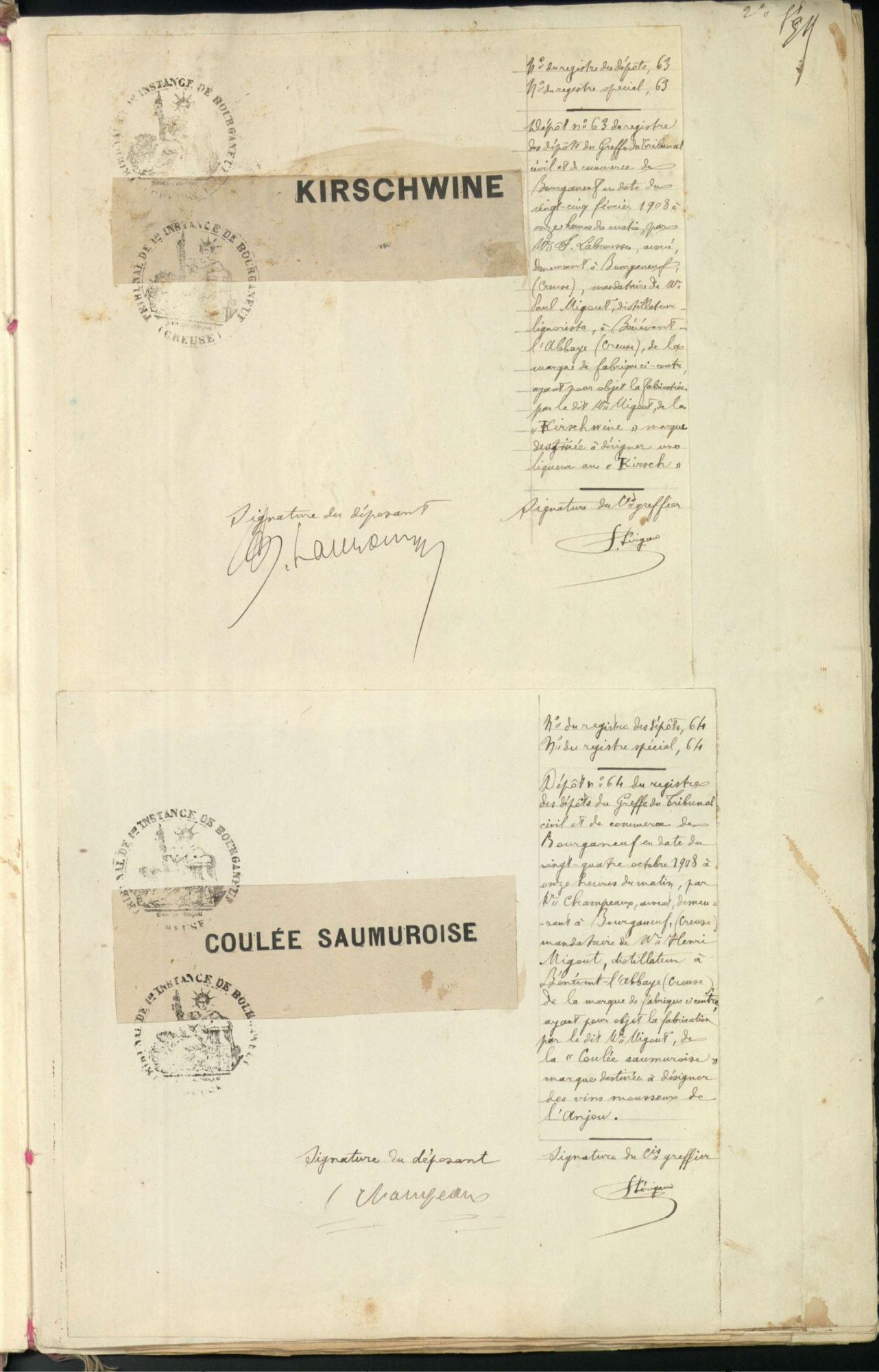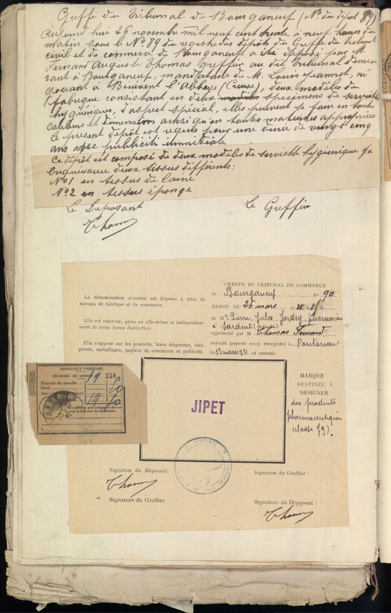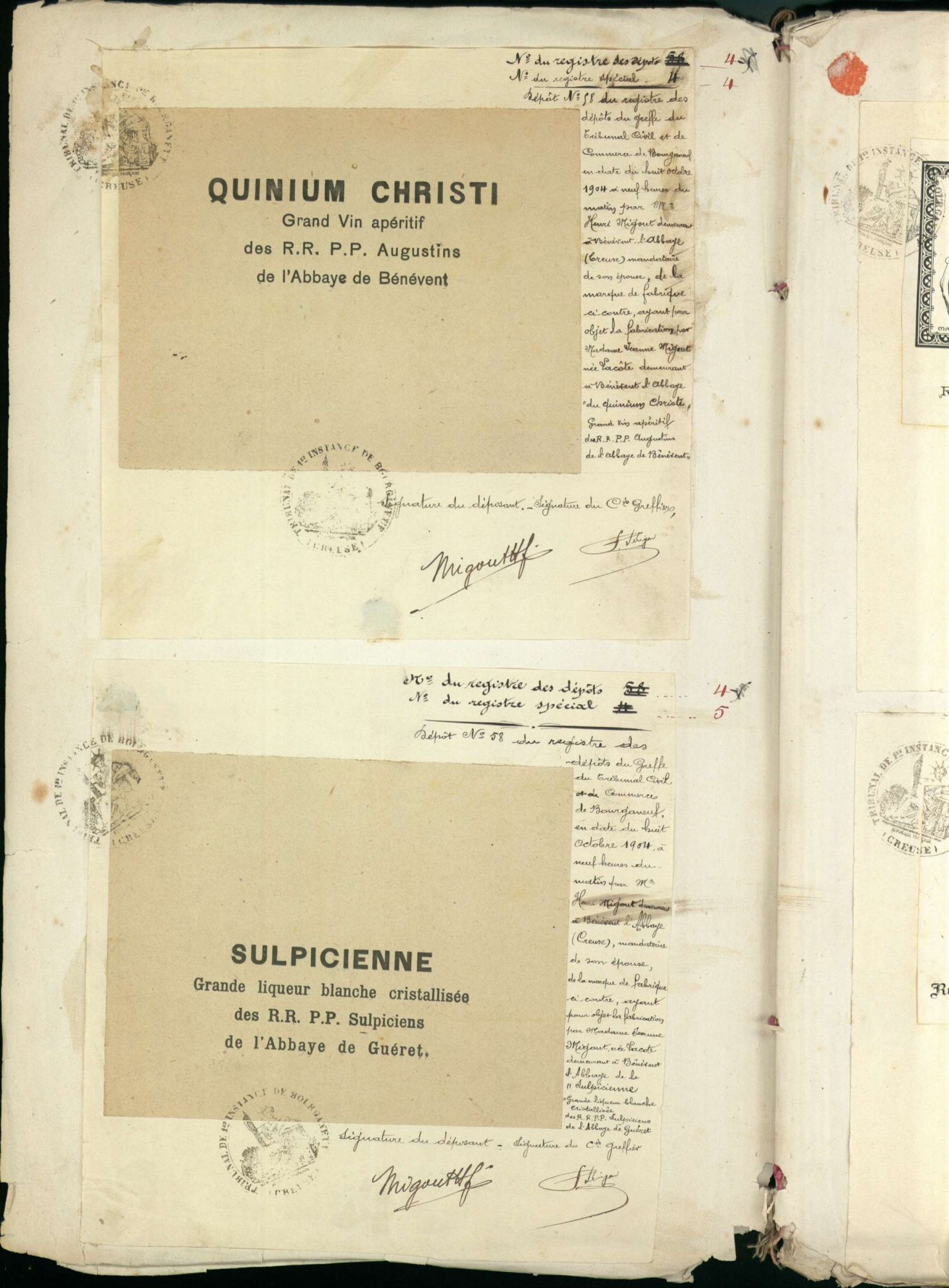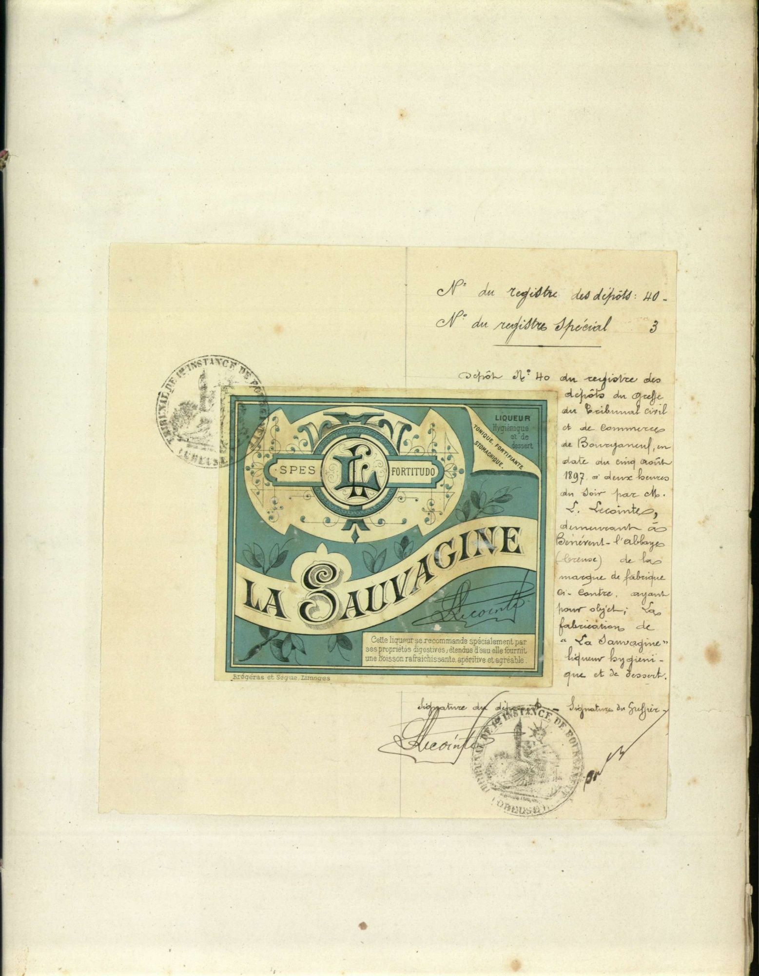 Marques de fabrique déposées au Tribunal de Commerce de la Creuse.