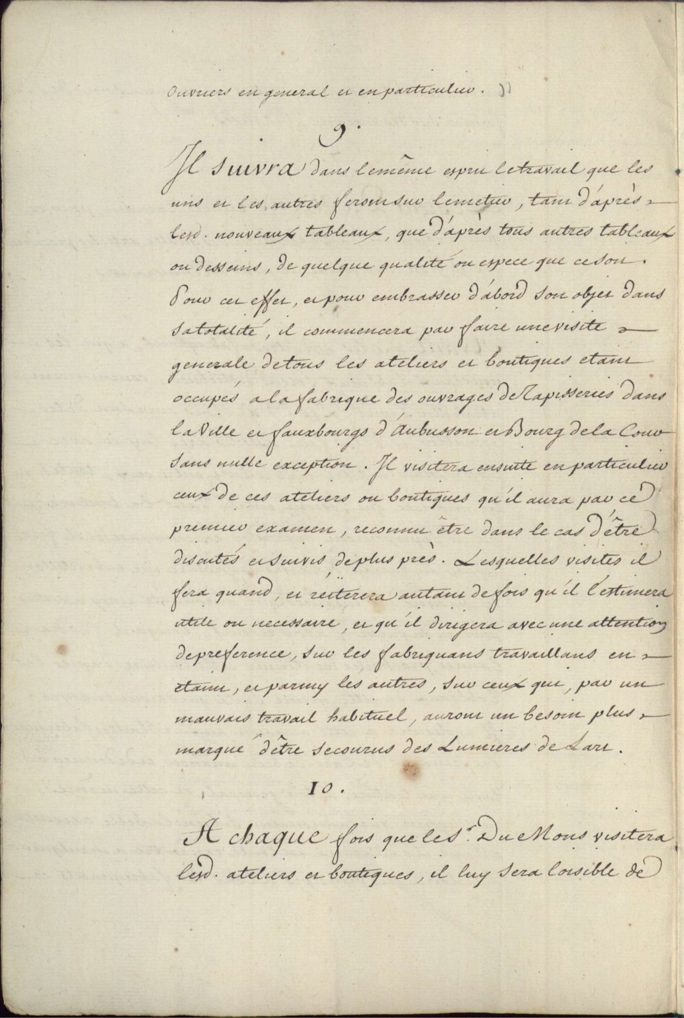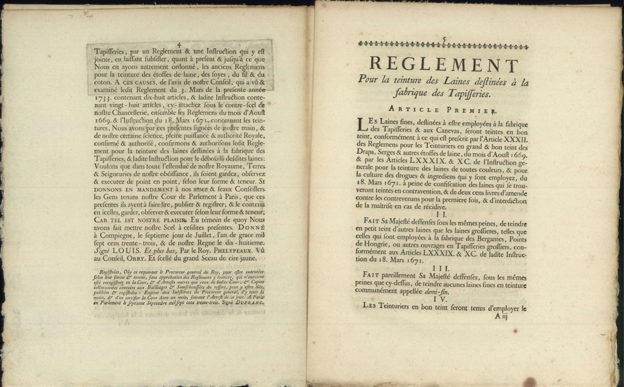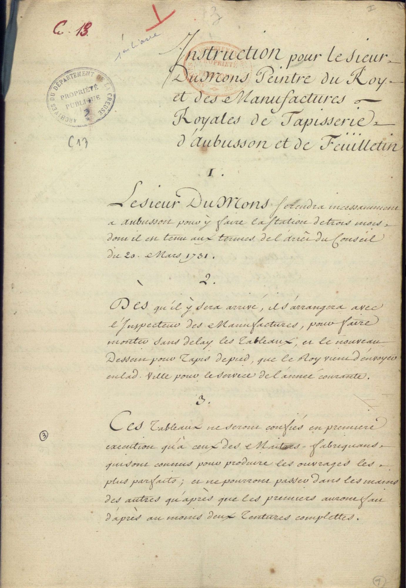 Ces documents (en majorité) du XVIIIème siècle nous plongent dans une époque, où ce secteur d’activité économique était très dynamique. Ces textes originaux montrent combien ce secteur d’artisanat d’art était réglementé pour garantir une haute qualité de production et protéger un savoir-faire unique. Ces manufactures d’Aubusson et de Felletin, protégées par le titre de manufactures royales, étaient un centre économique, social et aussi artistique, qui rayonnait bien au-delà des frontières de la Creuse.