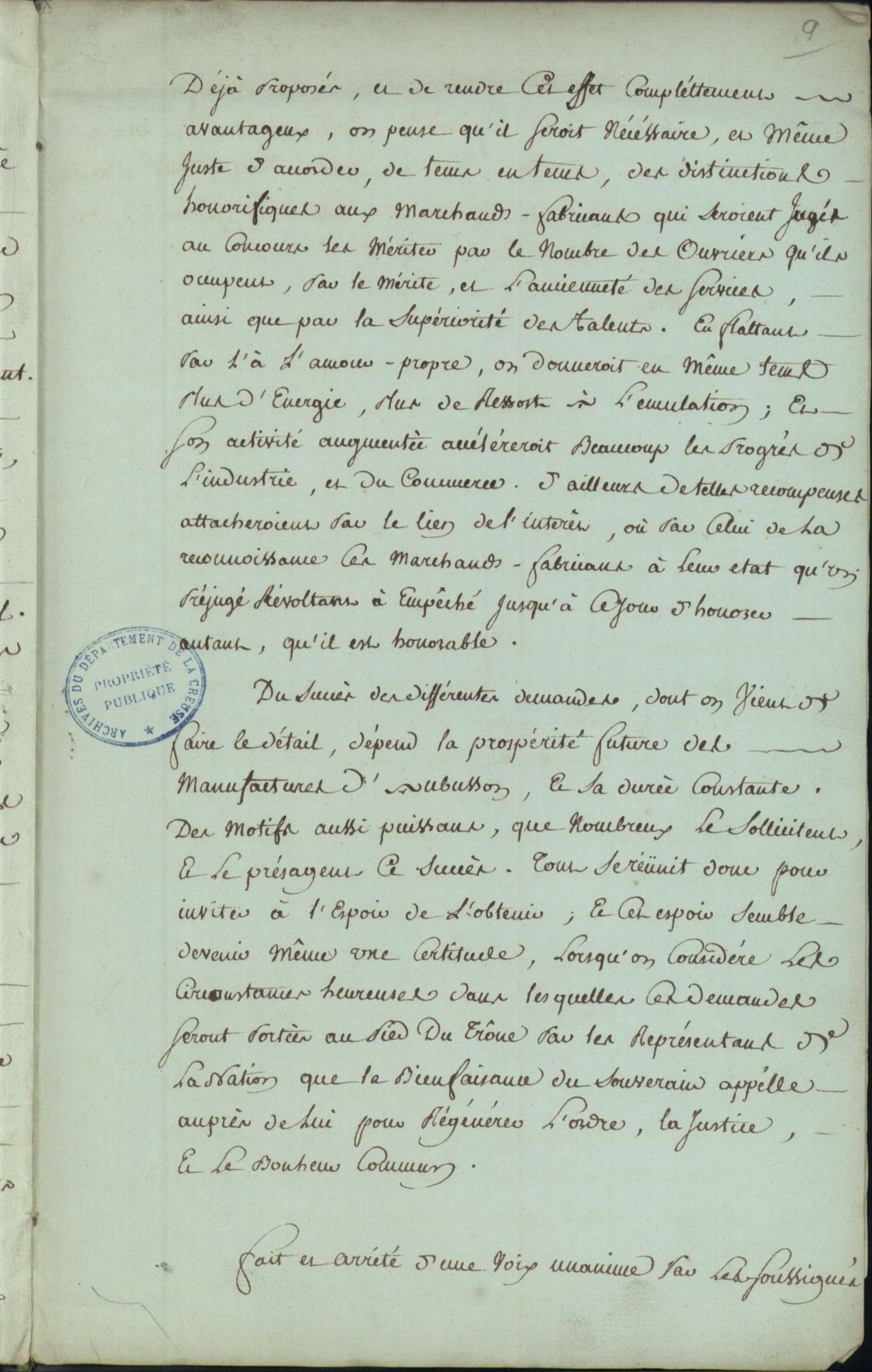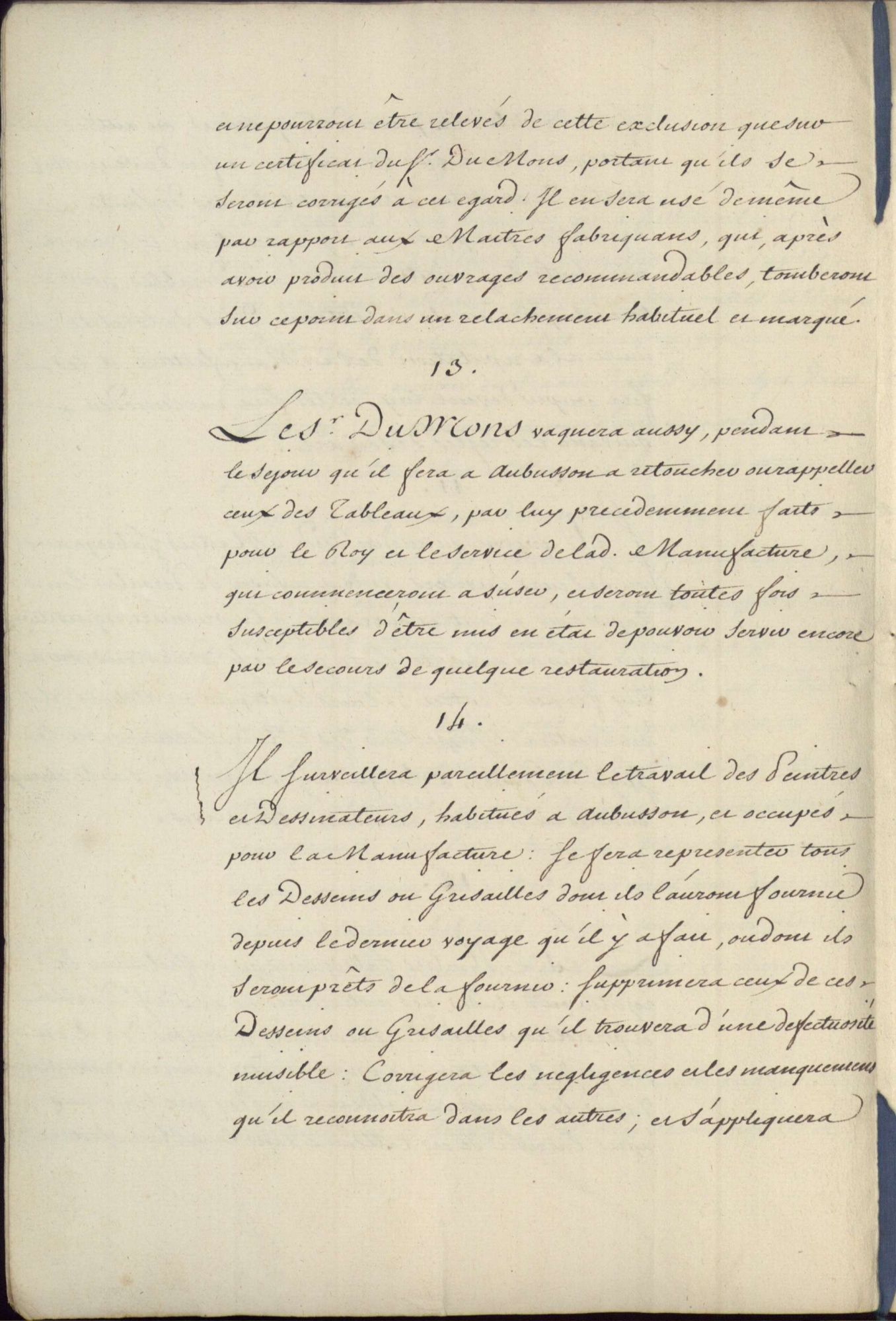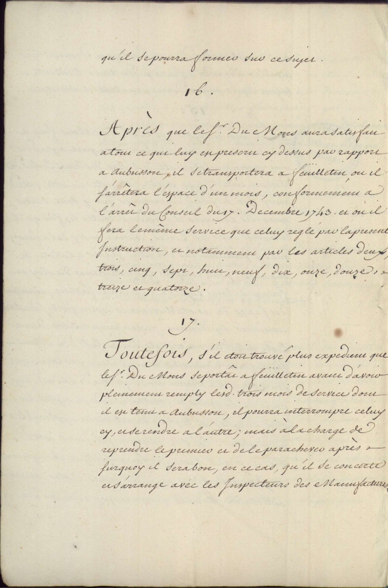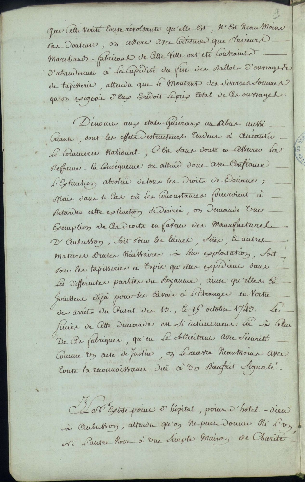 Ces documents (en majorité) du XVIIIème siècle nous plongent dans une époque, où ce secteur d’activité économique était très dynamique. Ces textes originaux montrent combien ce secteur d’artisanat d’art était réglementé pour garantir une haute qualité de production et protéger un savoir-faire unique. Ces manufactures d’Aubusson et de Felletin, protégées par le titre de manufactures royales, étaient un centre économique, social et aussi artistique, qui rayonnait bien au-delà des frontières de la Creuse.