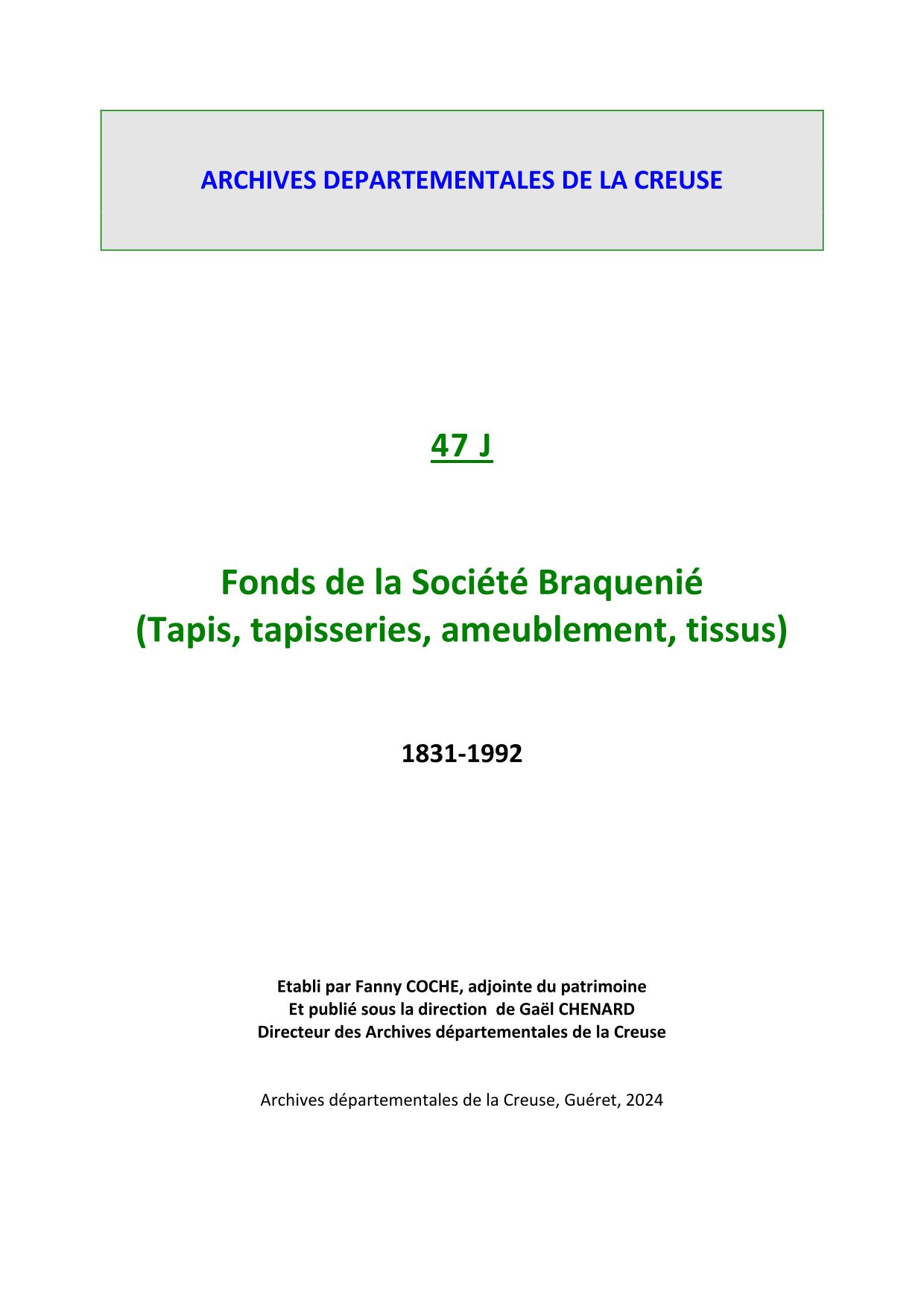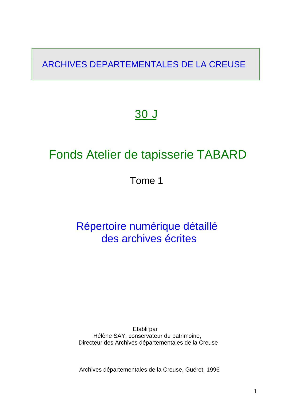 Registres des manufactures de tapisseries d’Aubusson (1855-1987)