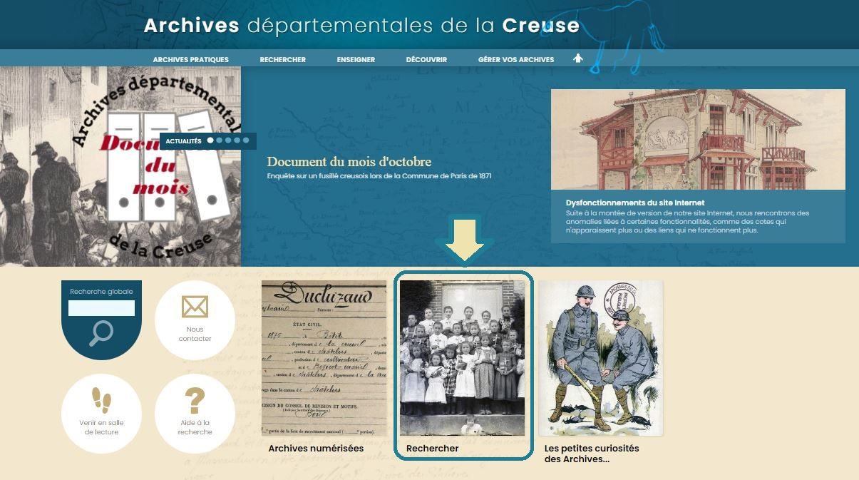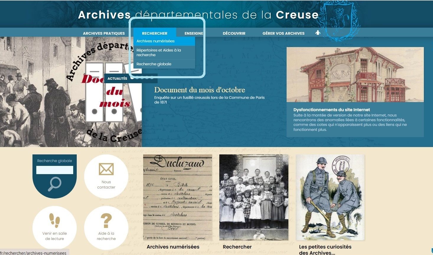 Méthode 3 : En passant par le menu Rechercher / Archives numérisées présent sur le haut du site