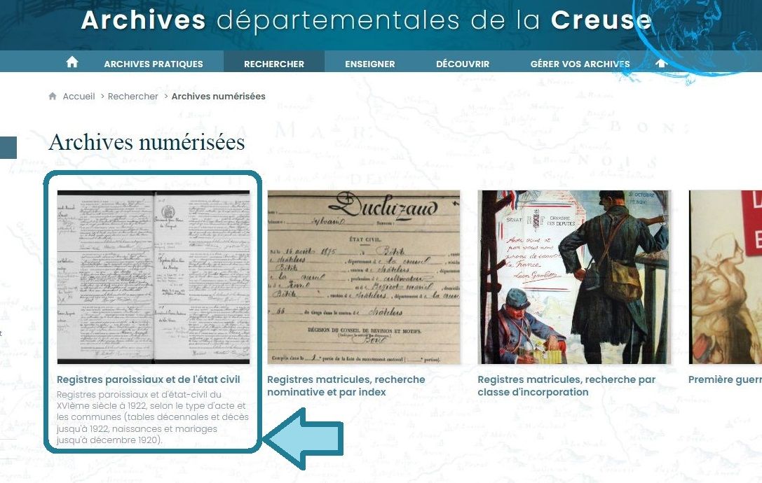 Méthode 1 : En cliquant sur la vignette Archives numérisées présente sur l'accueil du site