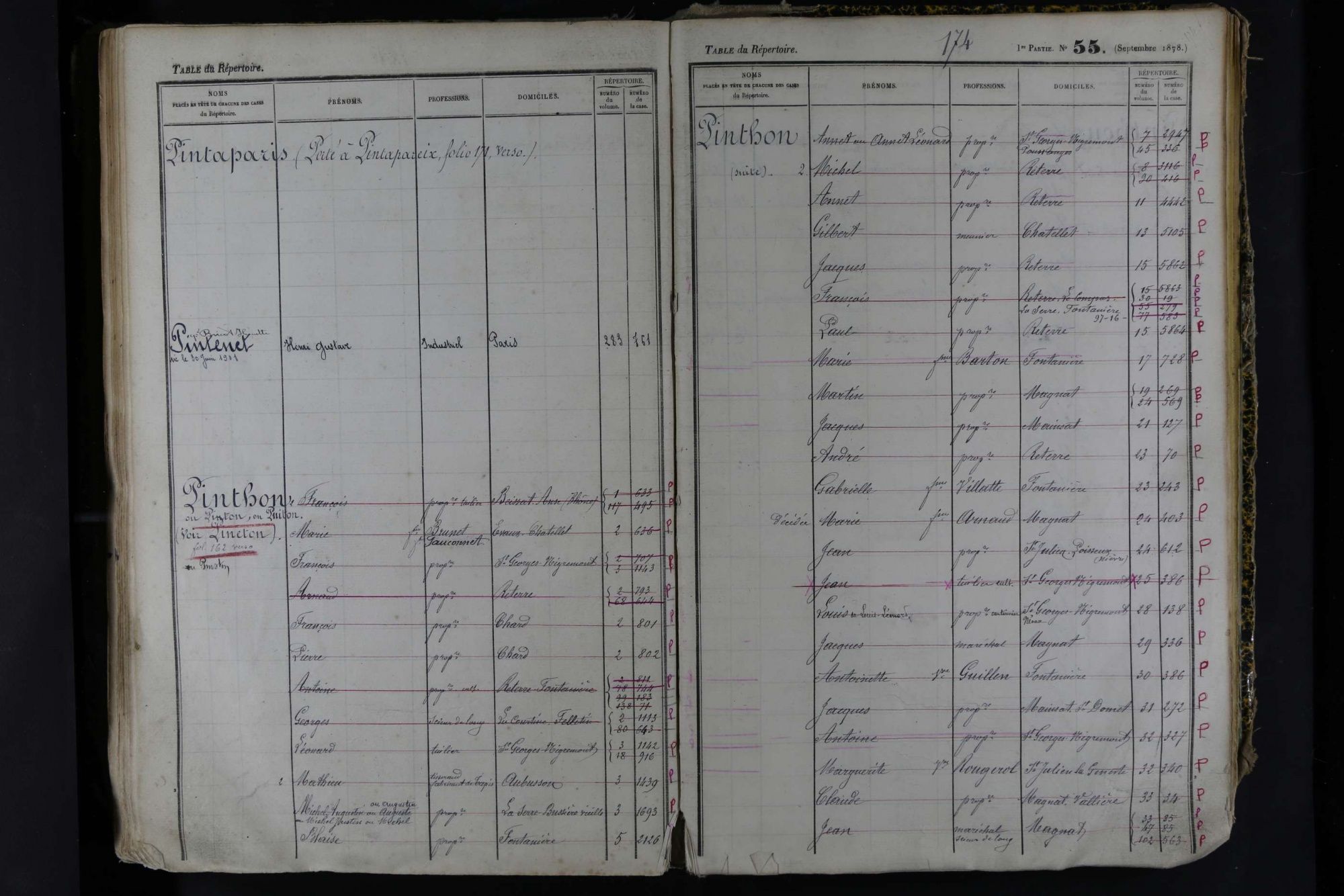 2. Consulter le registre indicateur de la table alphabétique du répertoire. On y trouve la mention d’un nommé X et le renvoi aux numéros du volume et du folio de la table alphabétique du répertoire des formalités.