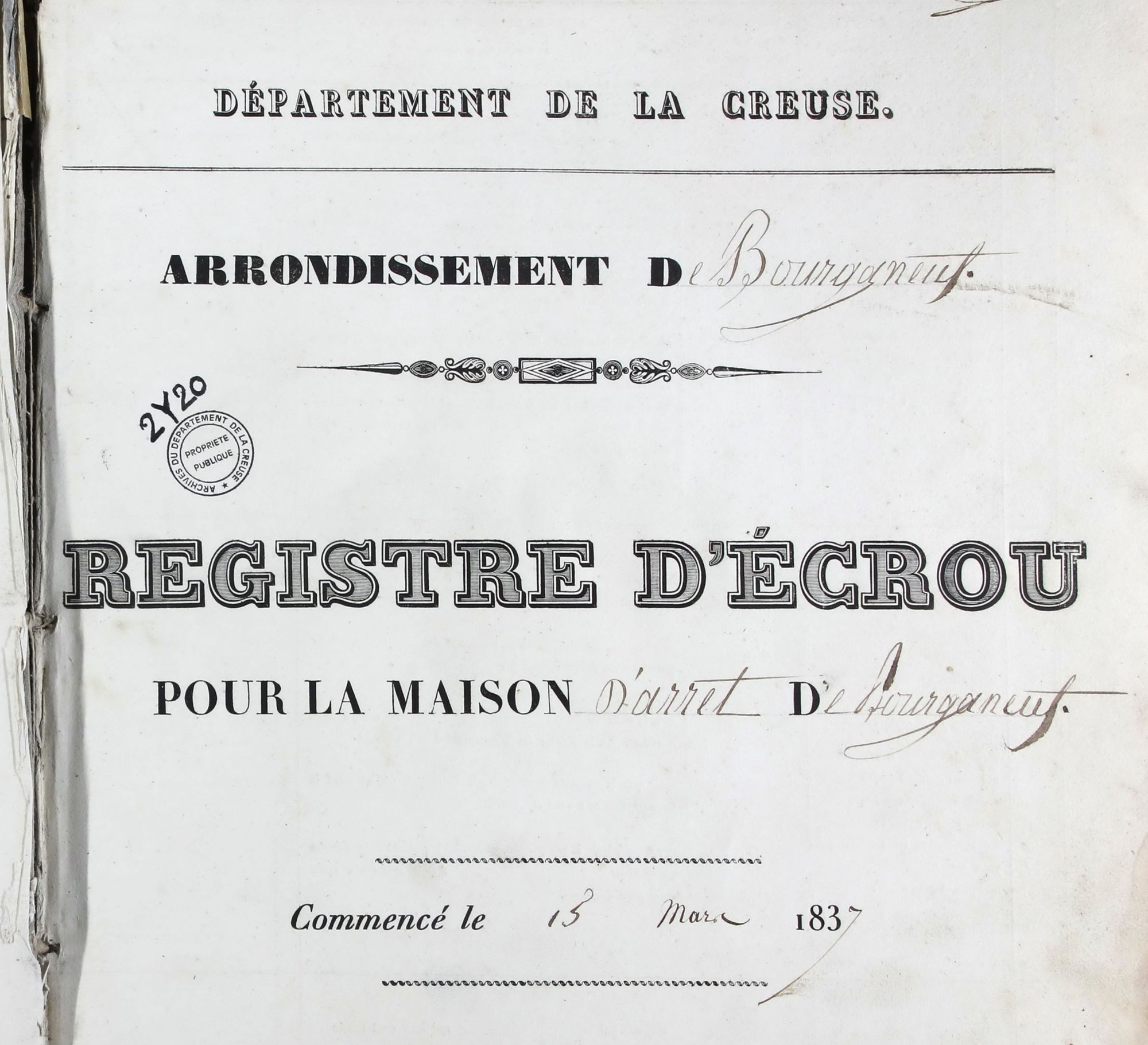 Vous trouverez ainsi dans ce fonds, les registres d'écrous numérisés de Bourganeuf, Chambon-sur-Voueize, Aubusson, Gouzon et Guéret.